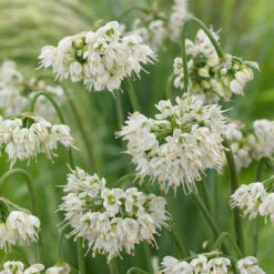 Allium Cernuum ‘White Dwarf’ is a short allium, ideal for growing in containers or at the front of a border. Produces heads with white blooms in a tight bulbous formation.