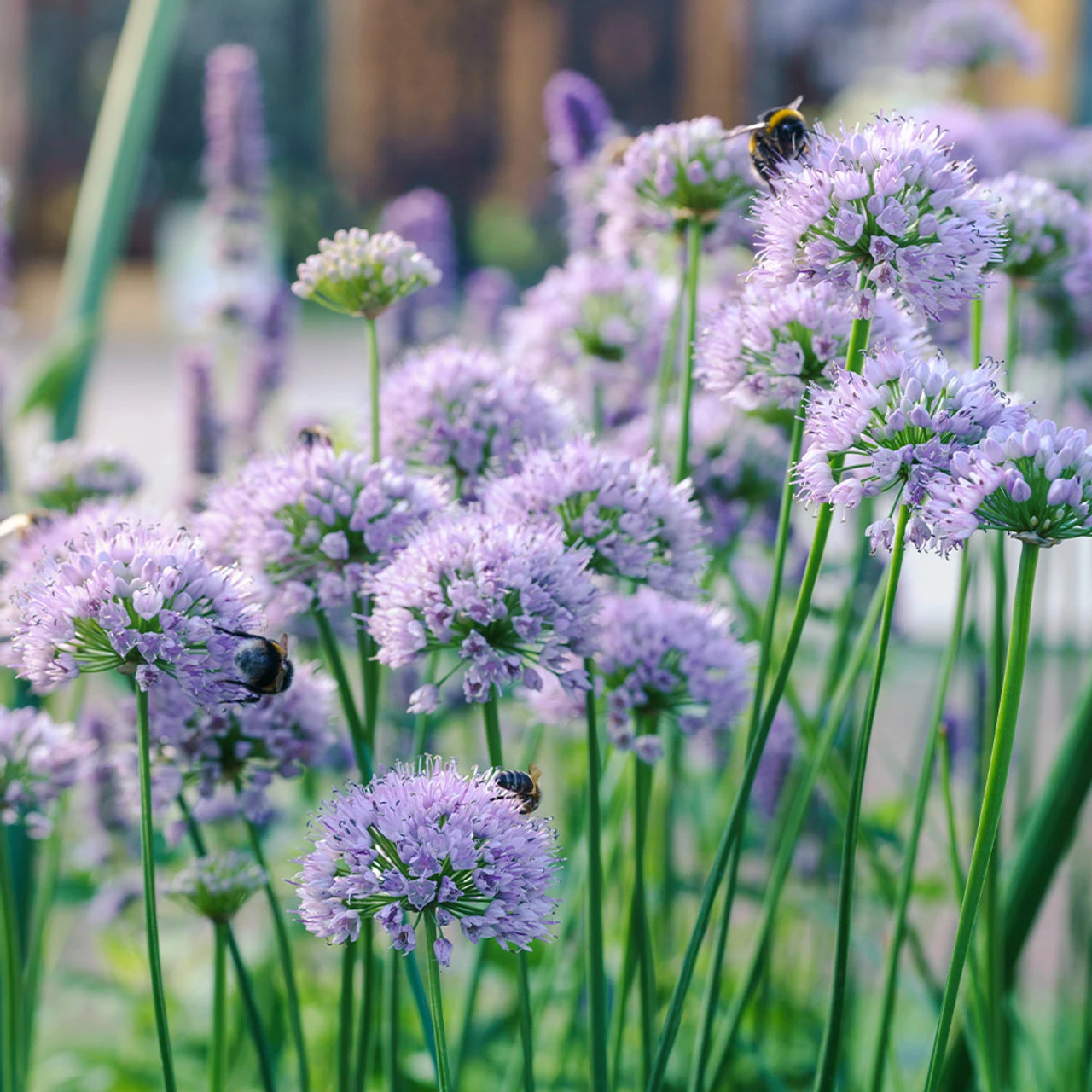 Allium Millennium is a stunning summer flowering Allium, bearing impressive rose-purple spherical flowers on strong 40-50cm stems. The neat, compact flowerhead sit above green slender stems and grass-like foliage. The large blooms are extremely attractive to pollinating insects such as butterflies and bees. Ideal for patio pots, containers or garden borders where the stunning flowers will create a superb display. They also make perfect cut flower displays to be enjoyed within the home. Height 45cm. First grade loose roots supplied.