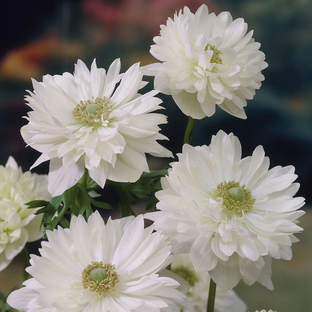 Anemone Mount Everest is a classic snow white, double flowering variety. Reaching mature heights of 30cm they have sturdy stems and a clump forming habit, ideal for borders and rockeries. This Anemone is native to the Mediterranean and flowers from April to May. Ideally planted in the UK during mid to late summer, they will flower in the following spring. The leaves die back after flowering, so we recommend planting with companions, so you do not get any bare spots and add a variety of colours into the garden display. This is a good plant for containers,borders and rockeries gardens. Anemones will thrive wherever the soil is rich and drainage is plentiful. The flowers are excellent for cut flower displays in vases. 4/5cm corms supplied.