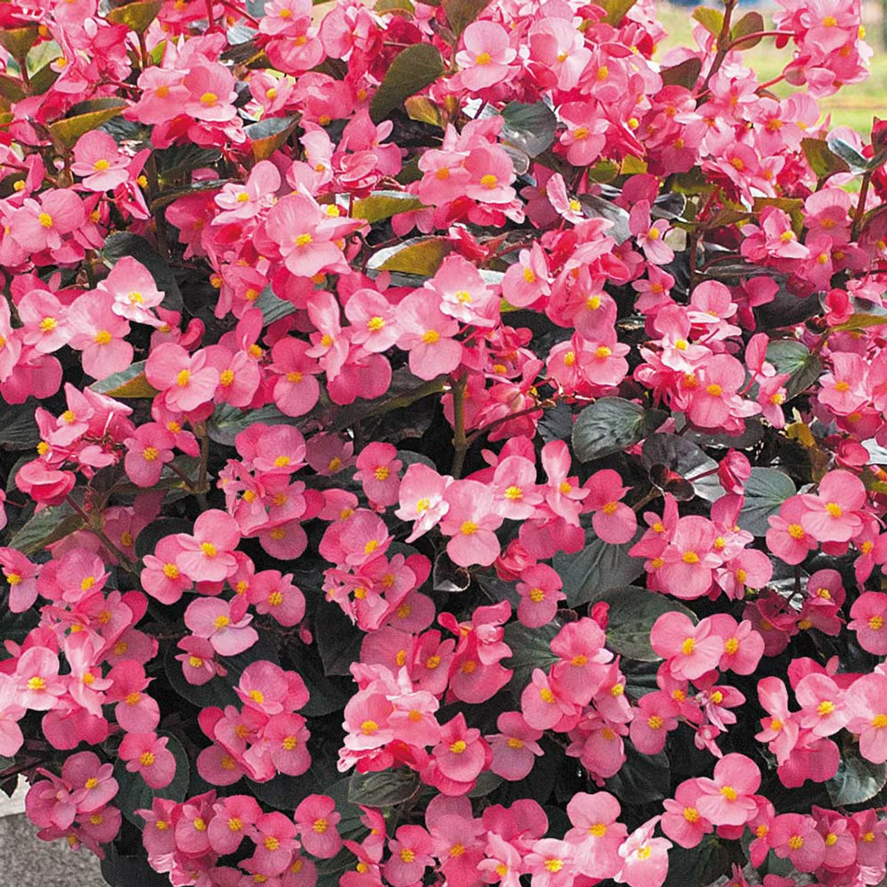 This spectacular breed of Begonia semperflorens grows into a giant 1 metre tall plant smothered in large pink flowers with stunning bronze foliage, right through the summer. A fantastic investment for a show-stopping Patio display.UK-grown 3cm grown plug plants supplied.