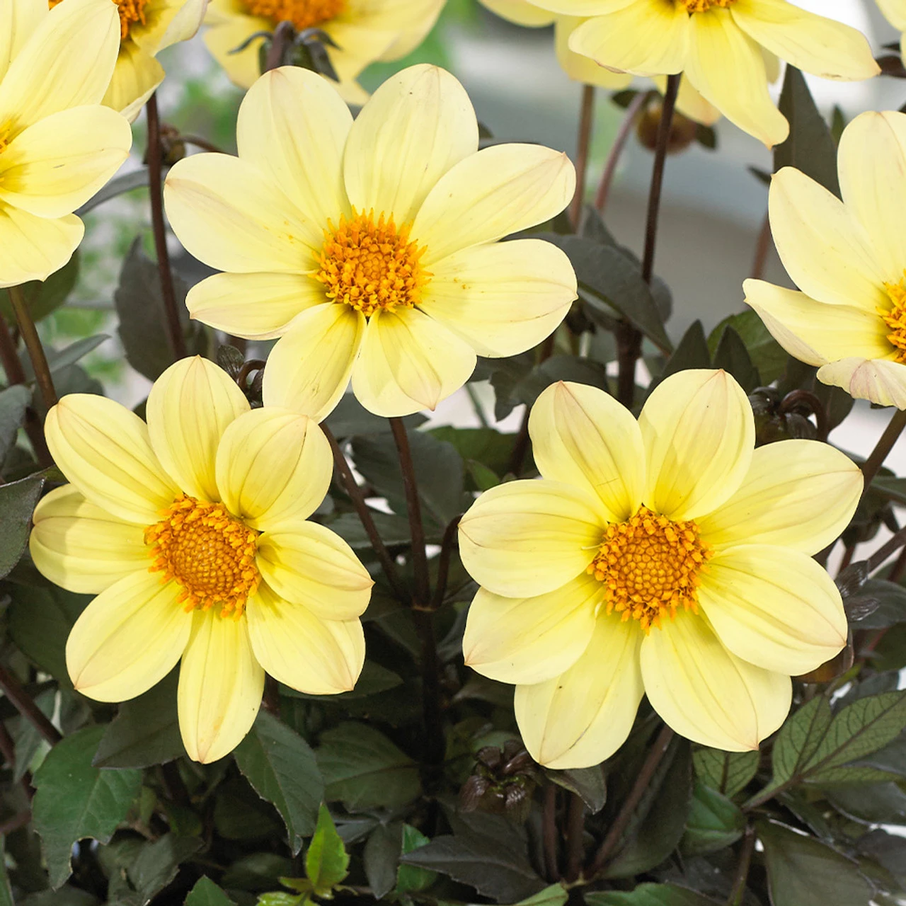 A premium range of dwarf Dahlias, Happy Dahlias Lemon produce an abundance of exciting and colourful flower that contrasts effectively between the light lemon coloured flower and the unusual dark green coloured foliage. Flowering from June to October. They are ideal for growing at the front of a border as they only grow to around 30-40cm, as well as being a great subject for pots and containers on the patio.Supplied as UK-grown 3cm jumbo plug plants.