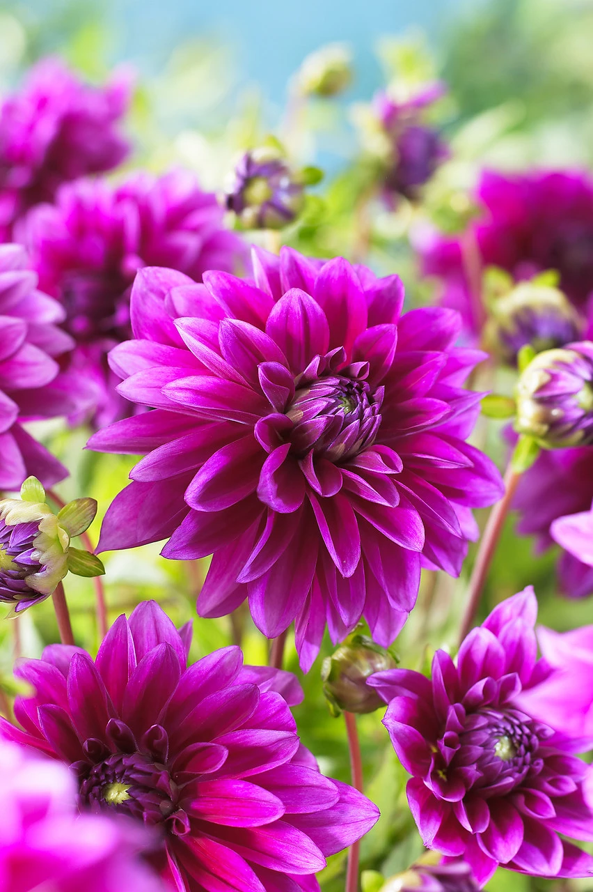 Dahlia tubers can be planted outdoors, 10cm deep in fertile well-drained soil in spring when the frost has disappeared. They prefer to be in a sunny location and spaced at approximately 45cm apart. In areas where there is extreme cold, dig up dahlias and store in potting compost over the winter. Apply a high potash fertiliser every few weeks in the summer to help growth. Dead head when necessary.