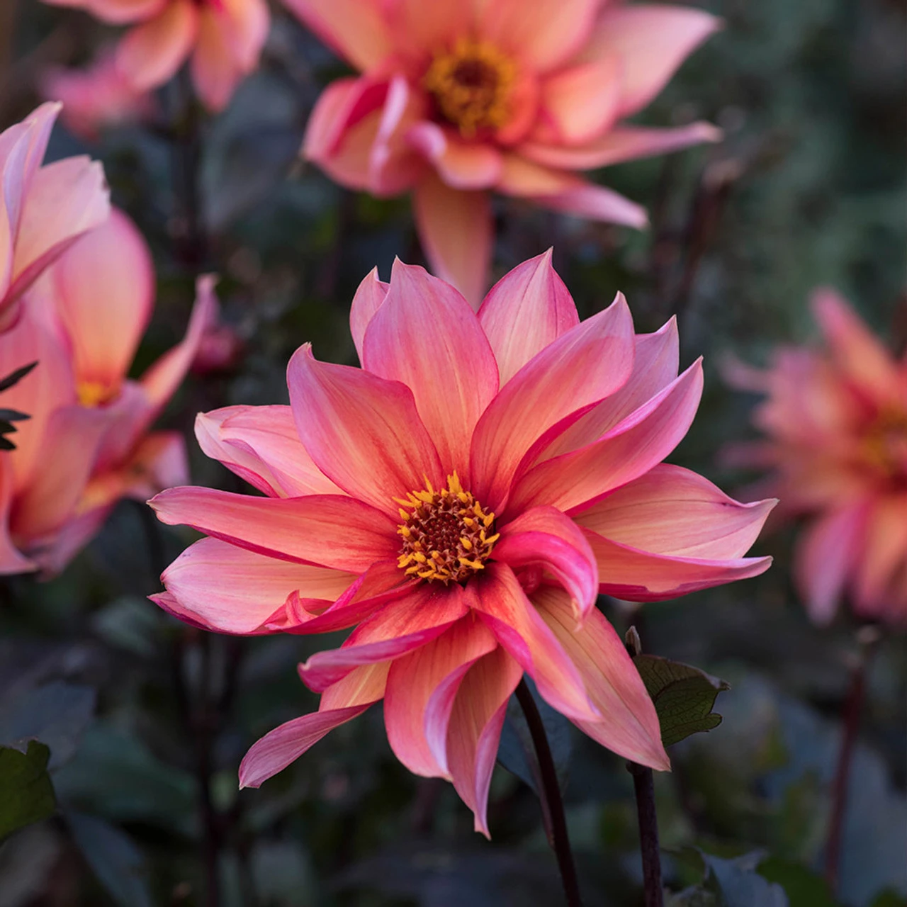 Dahlia Waltzing Mathilda is a superb choice for your summer displays. A winner of the RHS Award of Garden Merit and Plants for Pollinators. Produces sunset shades on each bloom, featuring hues of pink, red, and orange. This variety is more of a single-flowering shape, but still packs a punch in the border or in a bouquet.