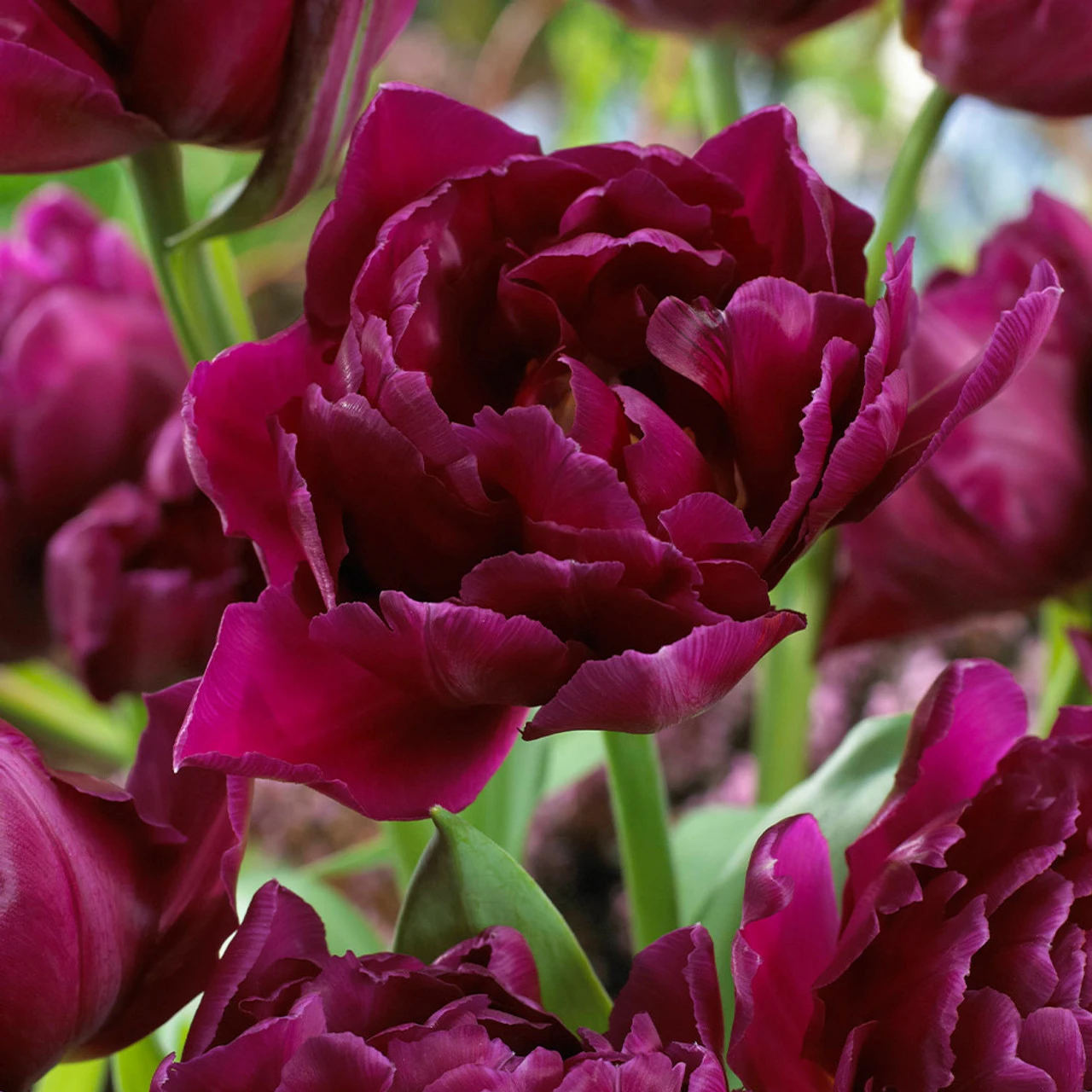 Tulip bulbs should be planted in autumn, before any frost. Find an area of soil that is well-drained and moist and plant your bulbs at twice their depth and spaced apart by 10-15cm. Ensure they are properly covered, you should not be able to see them on the surface of the soil. Position in an area that you know receives plenty of sunlight but is also sheltered from harsh winds. Deadhead the flowers once they wilt, encouraging a healthier plant.