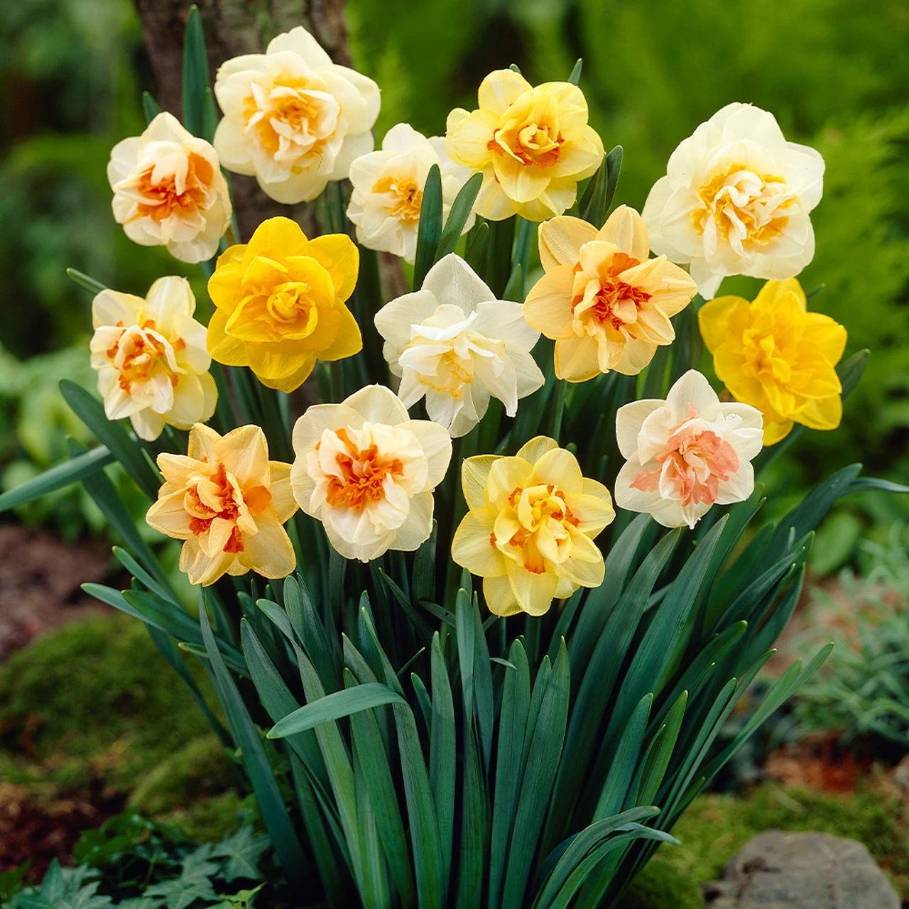 This Double Narcissus Mixed is ideal for achieving a cheerful, natural and carefree spring display. You will receive a range of beautiful double flowering varieties of various shapes and shades. We have brought together a great mixture to help create a breath taking naturalising display year after year. You can plant Double Daffodils Mixed alongside other spring bulbs in your borders or in patio pots and rockeries. All hardy varieties which will thrive in sunny or partially shaded locations. Heights 40-50cm. Flowering March to April. 12/14cm bulbs supplied.
