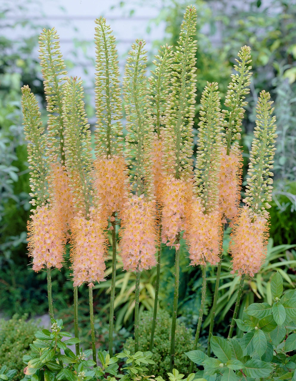 The dramatic soaring habit of Eremurus is a real treat in the summer garden and they boast fantastically long flowering lives, lasting what seems like forever in June and July. Romance displays giant salmon pink flowers. Commonly named Fox Tail Lilies, they are also known as the ‘desert candle’ thriving in the arid climates of Afghanistan and Turkey, so its no surprise to learn they prefer sandy, well-drained soil and plenty of sun. Leave to naturalise. Height 1.5m. Flowering June/July. Top Size Bulbs supplied.