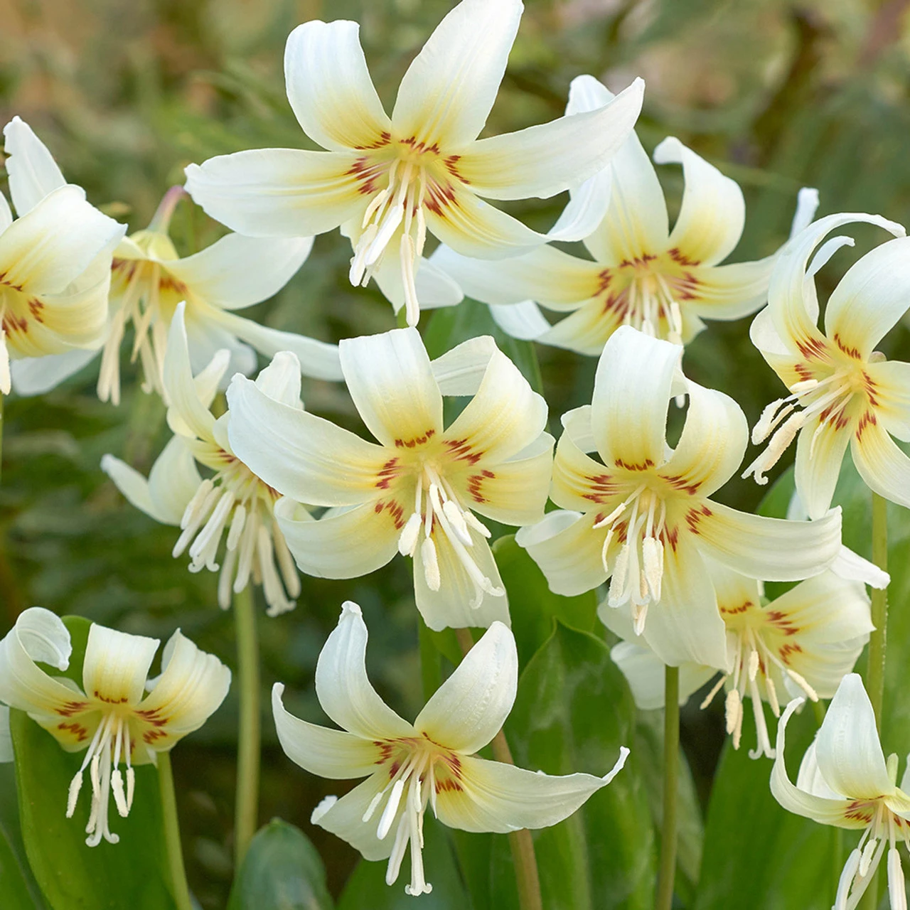 Erythronium, also known as Dog’s Tooth Violets, are a classic woodland bloom. This means that they thrive in shaded areas, whether it’s partial or full shade, like under a tree or bush. Ensure the soil they’re grown in is well-drained but remains moist throughout its growing period. These spring blooms are grown from bulbs that look like dog teeth, hence their name. Plant them with the shoot facing the sky, about 10cm deep. If storing, ensure you mist the bulbs regularly to keep them moist (but not wet or soggy).