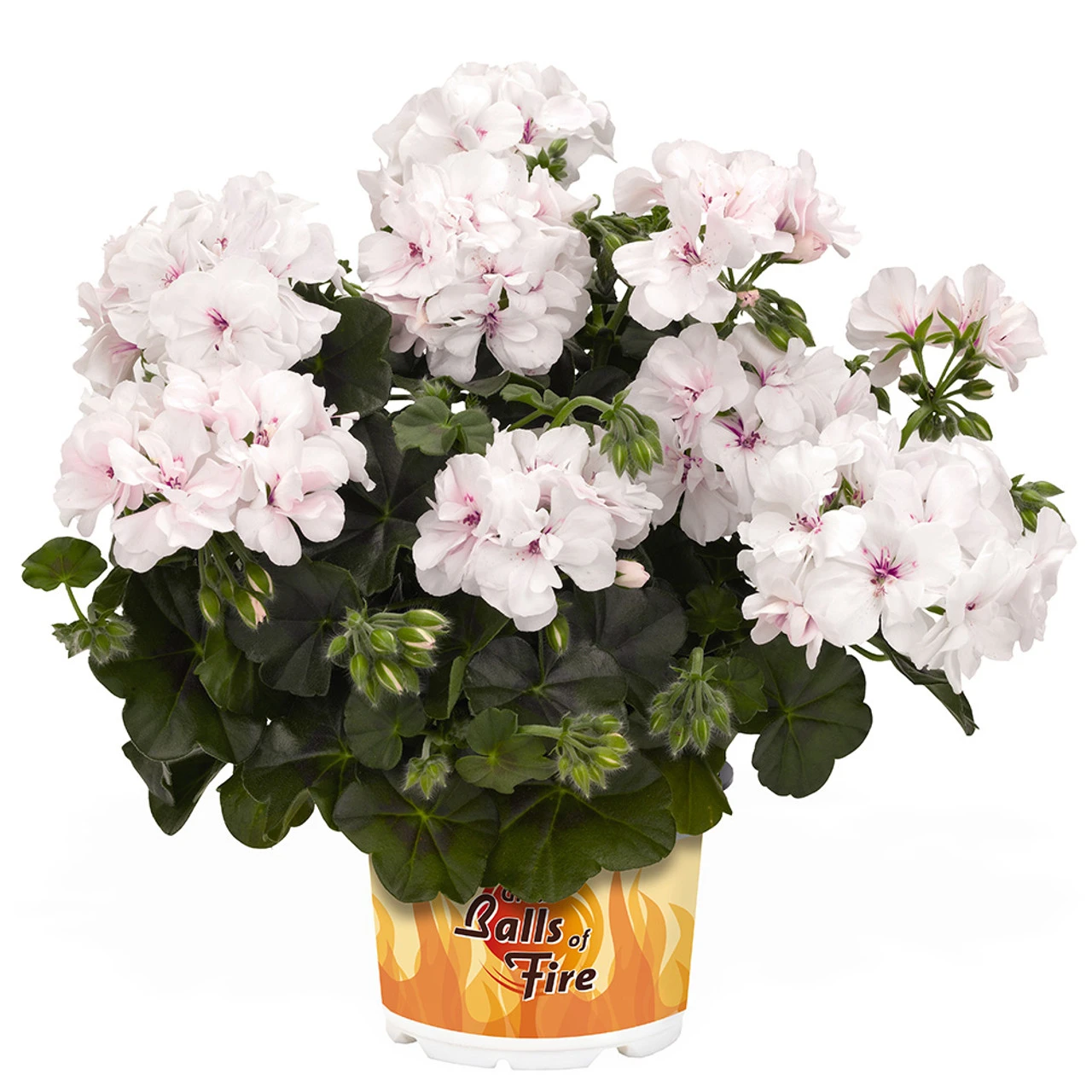 The ever-popular choice of gardeners everywhere, the humble Geranium really has earned its place as a staple of the British garden. With a trailing habit of 30-60cm, Great Balls of Fire White produces large showy white flowers and glossy ivy-like foliage. It can be planted alone or will compliment most other colours, they are hardy with sturdy, upright stems and strong weather resistance a perfect choice for the unpredictable British climate. With a mature height of 50cm, they are slightly scented. They are perfect for patio pots and containers where they can be fully appreciated, or with their fine foliage they are a great addition to a bed or border. Hardy UK-grown 3cm jumbo plug plants supplied.