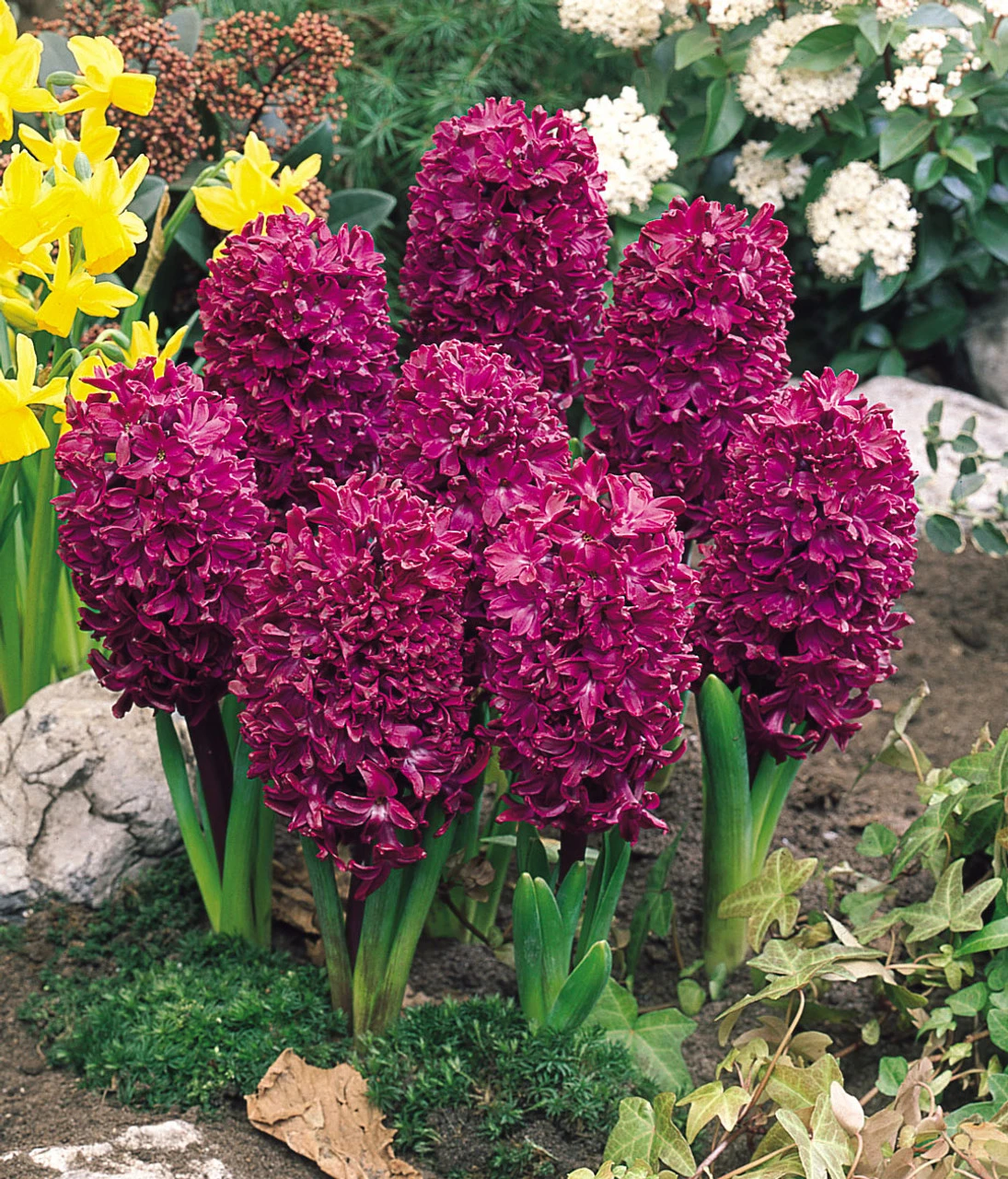 Specially treated at low temperatures in July/August to trick them to believe that winter has been and gone and it is time to grow. With the correct care these prepared Hyacinths can be in flower as early as Christmas. The stunning result is worth the effort, producing large bell like flower heads tightly packed with dark beetroot purple star shaped flowers framed in forest green curved spears of foliage. The rich blooms and intoxicating fragrance evoke a longed for reminder of summer during those cold winter months. Supplied as 16/17cm circumference bulbs.