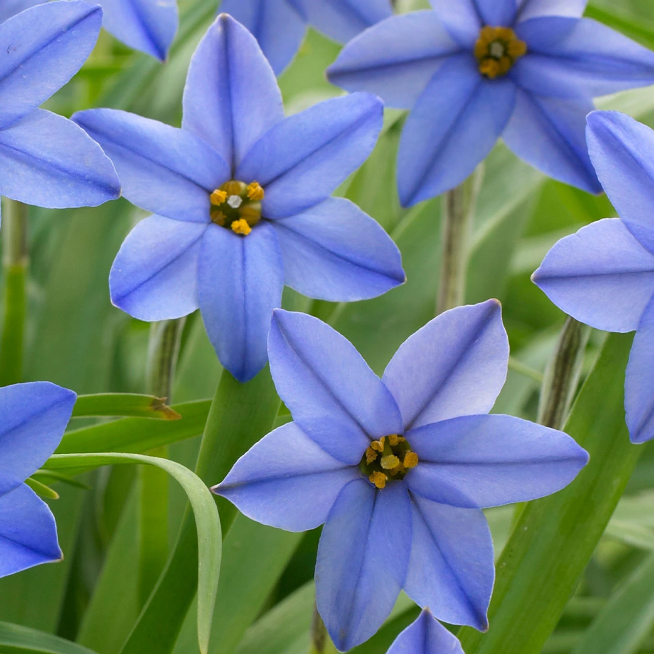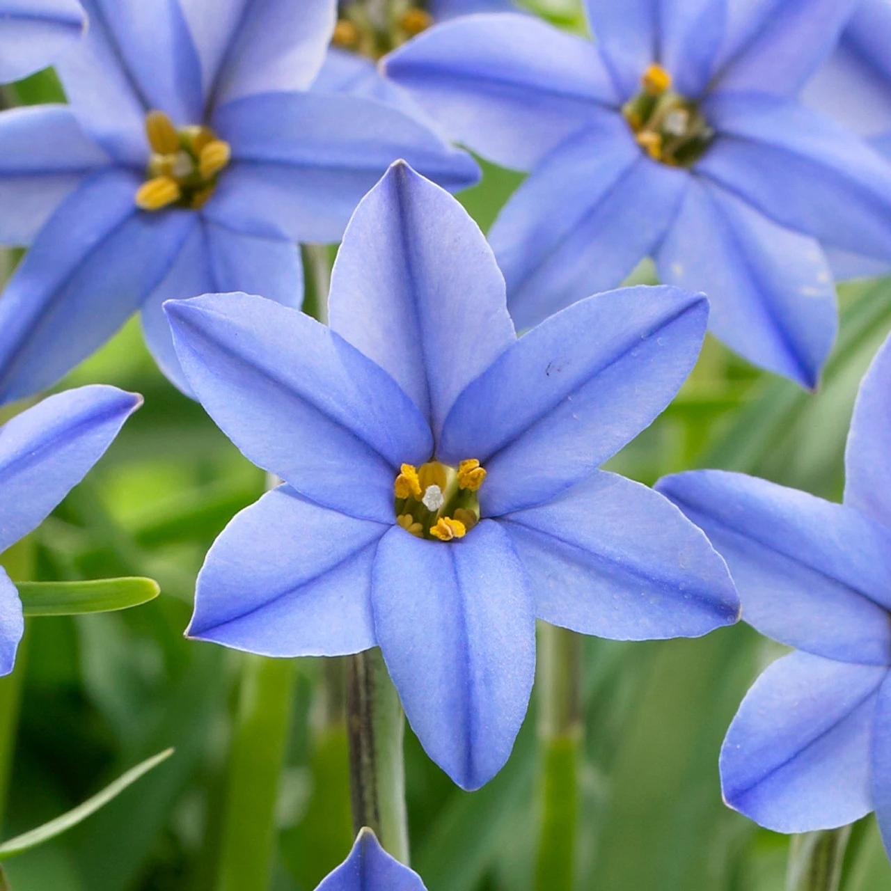 Native to Argentina, Ipheion Uniflorum Jessie is a stunning hardy blue star-shaped flower has a darker violet stripe down the centre of each petal. Spring Starflower uniflorum Jessie are beautifully scented in late winter and spring, the narrow strap-shaped leaves have a slight onion scent. They are very easy to grow and look fabulous planted in drifts, rockeries and especially somewhere you can appreciate the sweet scent. Height 15cm. Flowers April – May. Top sized bulbs supplied.