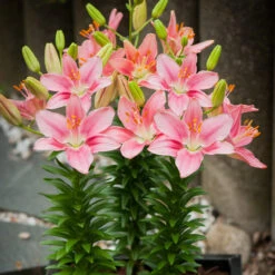 Lilium Brasilia is a stunning variety of oriental lily that produces unusual star-shaped flowers. The bright white flowers are slightly reflexing with a ruffled edge of mauve pink. They produce a wonderful fragrance when they bloom from months on end. Ideal for borders and patio pots and make excellent cut flower displays. For best results plant in clumps in well-drained soil where they are not exposed to wind and can get plenty of sunlight.