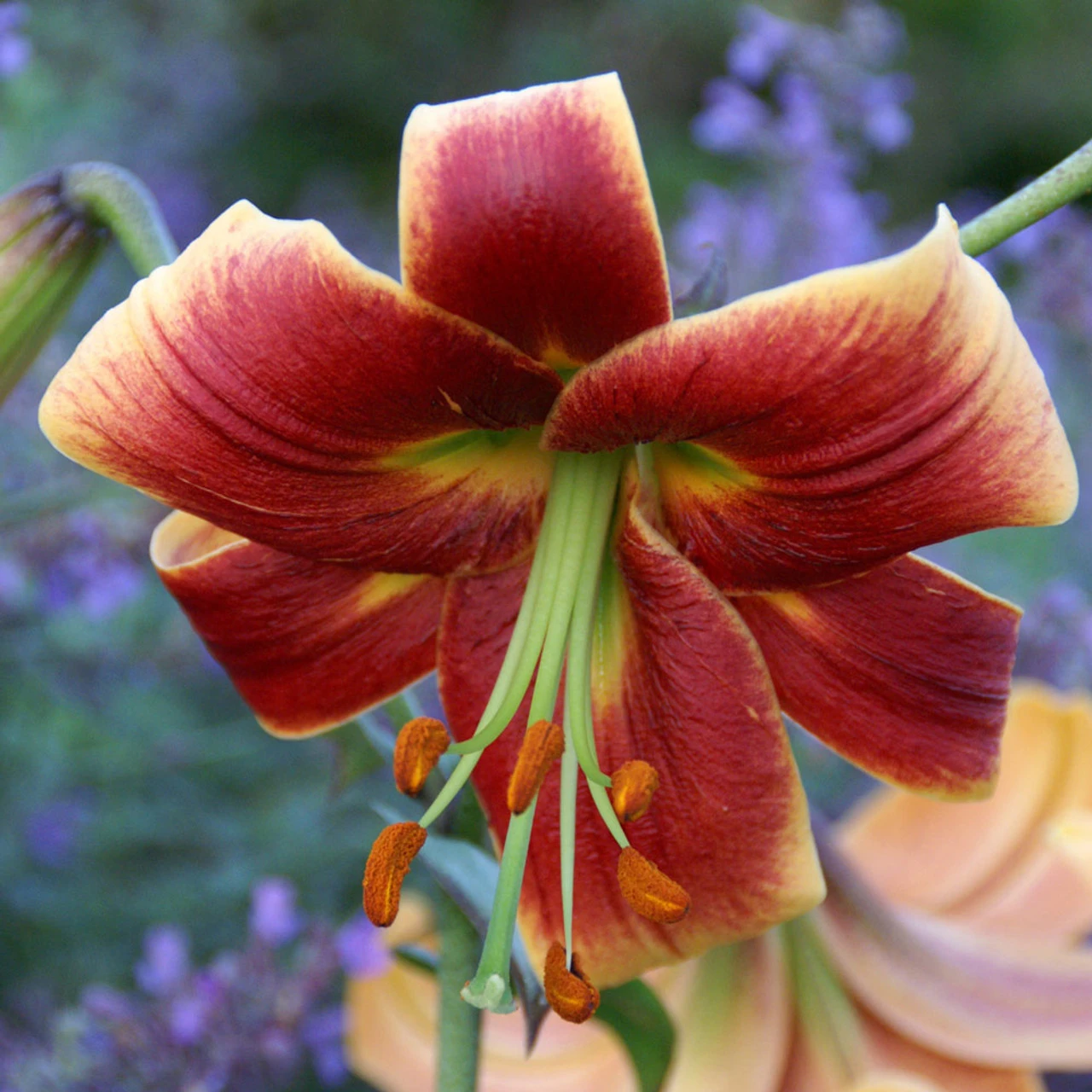 Lily bulbs will greatly appreciate the shelter of low growing shrubs or other plants near their roots. In active growth, apply water freely a high potash liquid fertilizer every two weeks or so. When planting, each bulb should surrounded with a little sharp sand both under and above the bulb to keep slugs away and to ward off excessive wetness. As most lilies are stem rooting, we strongly recommend you plant about 15cm deep. They give a much better display when planted in clumps of 3, 6 or 12 bulbs, spaced 45cm apart. Plant from December to April to see them appear in summer.