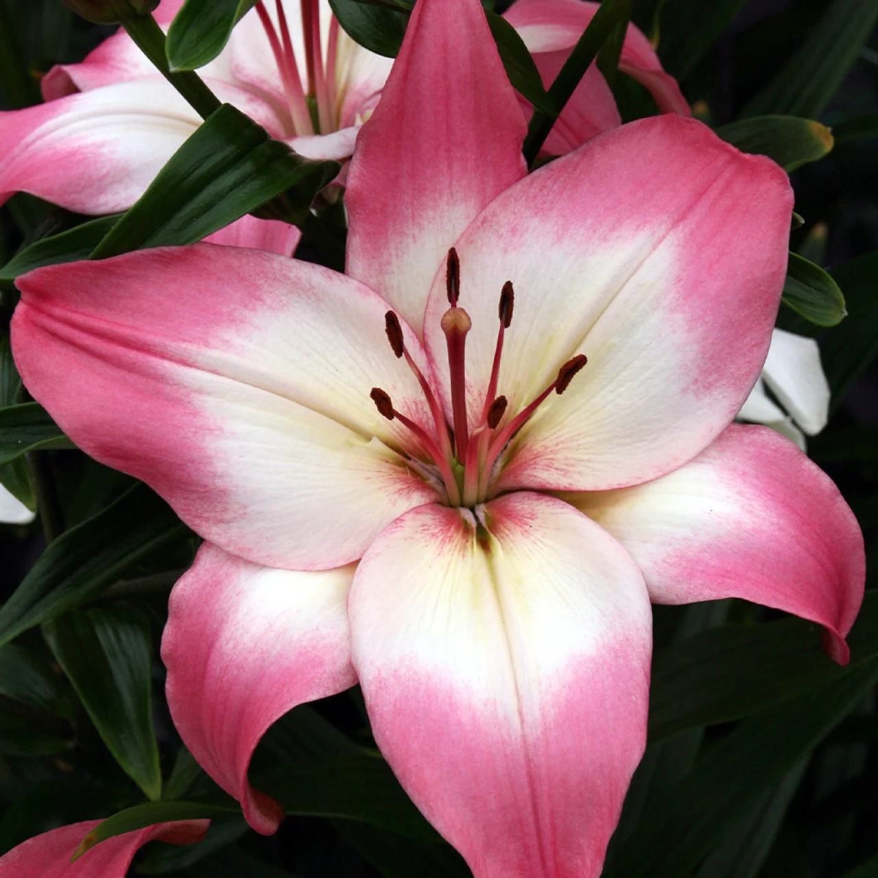 Lilium ‘Levi’ produces stunning pink Lilies with a contrasting white centre. A must-have summer bloom for adding colour to borders, patio containers or as part of a cut flower display. Grows to an average height of 85cm and flowers from July to August. Top-quality 14/16cm bulbs supplied.