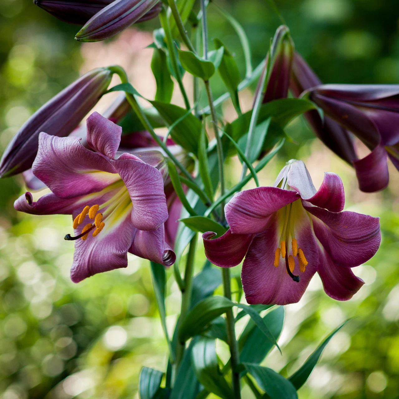 Lily bulbs will greatly appreciate the shelter of low growing shrubs or other plants near their roots. In active growth, apply water freely a high potash liquid fertilizer every two weeks or so. When planting, each bulb should surrounded with a little sharp sand both under and above the bulb to keep slugs away and to ward off excessive wetness. As most lilies are stem rooting, we strongly recommend you plant about 15cm deep. They give a much better display when planted in clumps of 3, 6 or 12 bulbs, spaced 45cm apart. Plant from December to April to see them appear in summer.