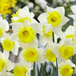 Narcissus Avalon is a sublime RHS award of garden merit winner. This fragrant variety is a hardy and reliable type of daffodil. It sports large round lemon petals with a bright yellow ruffled cup that softens with a maturity to milky white. Also known as a reverse bi-coloured daffodil due to its trumpets being a lighter colour than its petals. Daffodil Avalon thrives in sunny or partially shaded locations. Flowers from March to April. 12-14cm bulbs supplied.