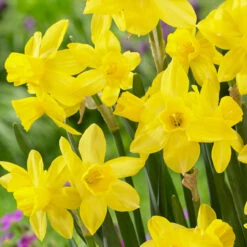 Daffodils (or narcissi) are both easy to grow and incredibly reliable. Like many bulbs, it takes very little time to plant them. Remove any weeds in the area you’d like to plant your bulbs and dig at the soil to aerate it. Fork in some organic matter to improve the drainage and soil structure. Daffodils prefer sunny spots and well-drained soil, so keep this in mind when planting. Plant each bulb 2-3 times the bulbs height and place it with the shoot facing upwards. Space them twice their width apart. Cover with soil and water if the ground is dry.