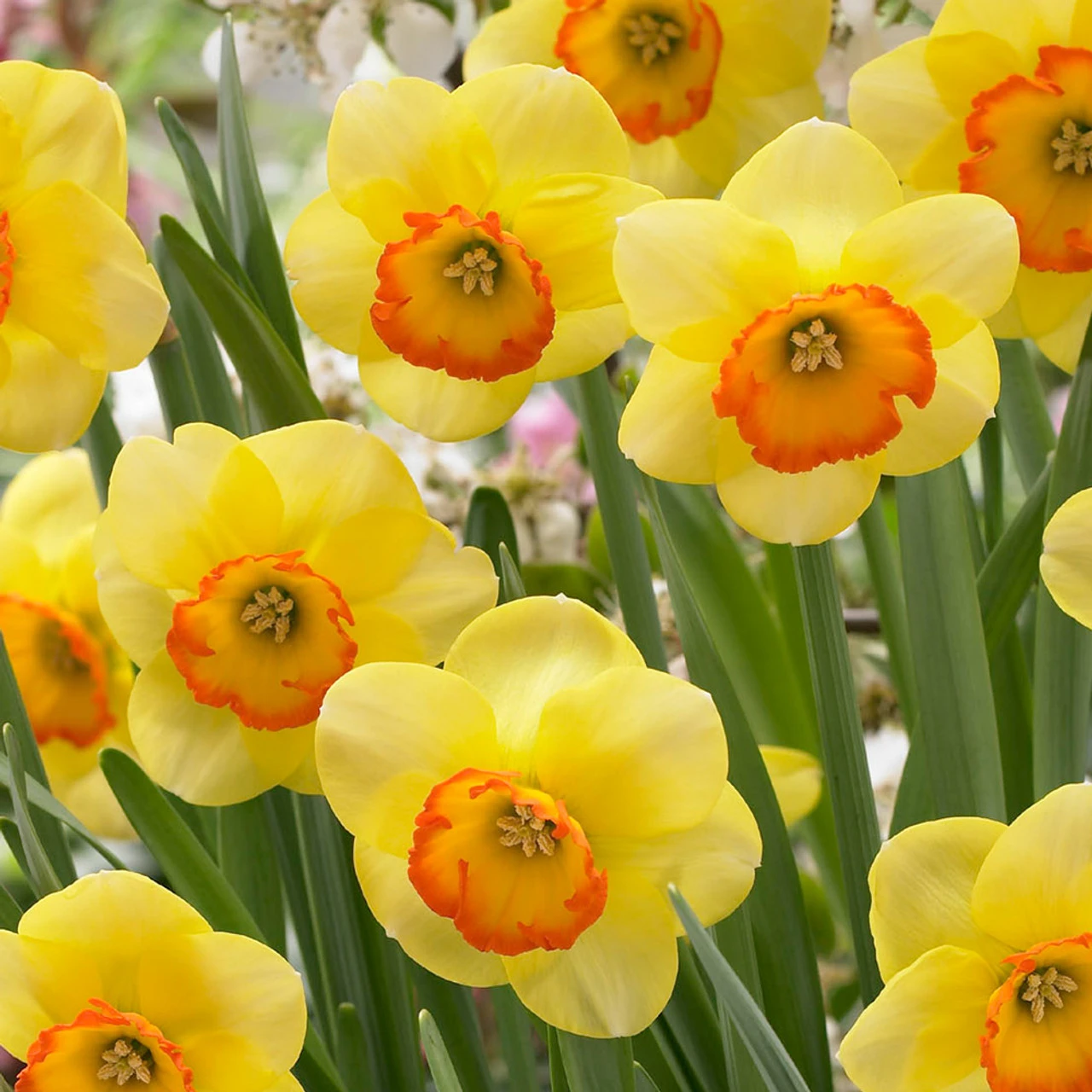 Narcissus Bantam is a fiery flower thats blooms appear with orange trimmed cups bleeding into bright yellow, the surrounding buttery yellow perianths are overlapping with a splendid framing effect. Each perfectly formed flower head rises above spears of glaucous foliage. Daffodil Bantam is a deserving recipient of the prestigious Award of Garden Merit. These will burst into life in spring and endure in all weathers. The most versatile of varieties performing well in beds, borders, containers or excellent as cut flowers. 12/14cm bulbs supplied. Flowers March-April.