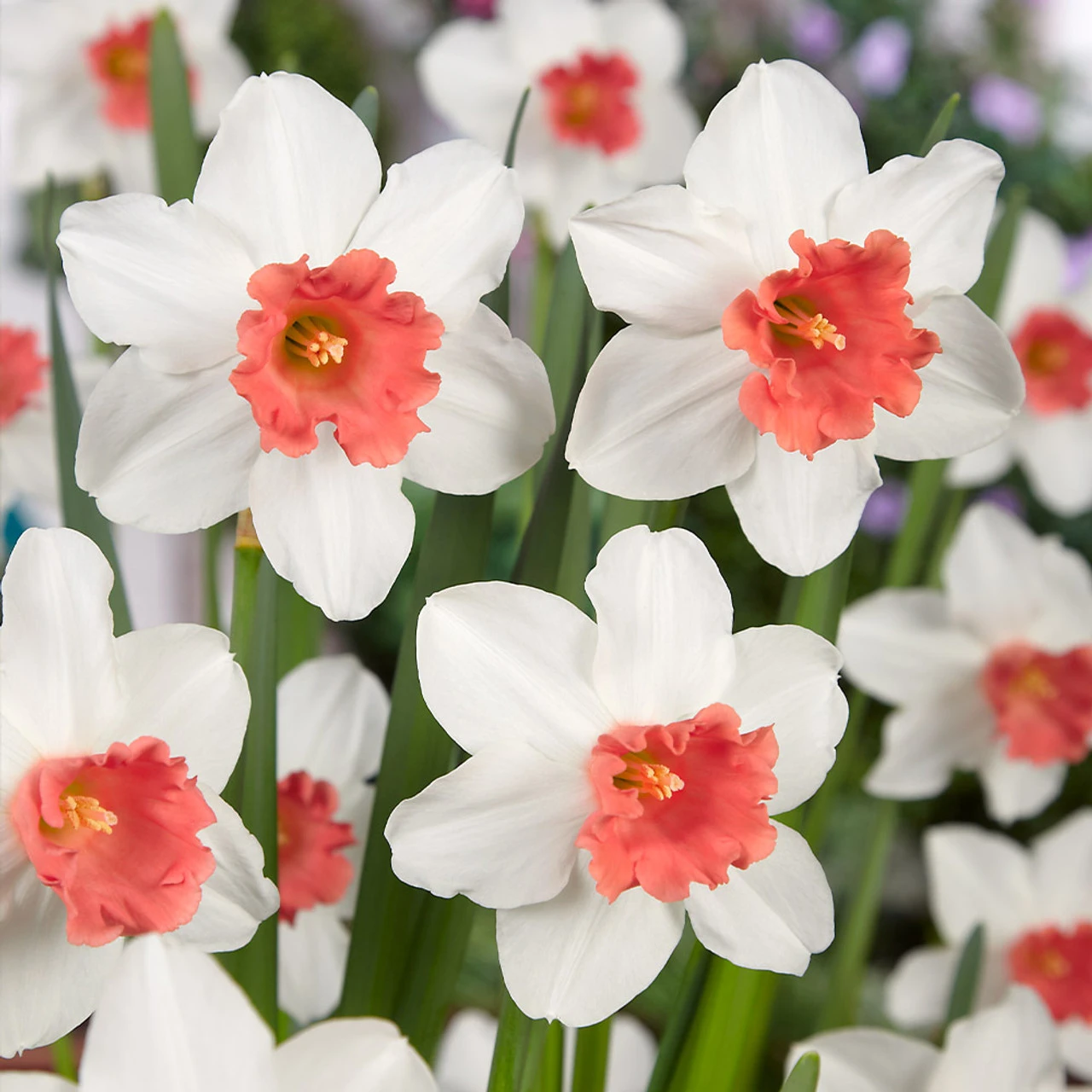 Narcissus ‘Charming Lady’ produces striking white petals with a vivid orange centre. An impressive option for growing in groups, but will also look perfect partnered with other spring blooms.