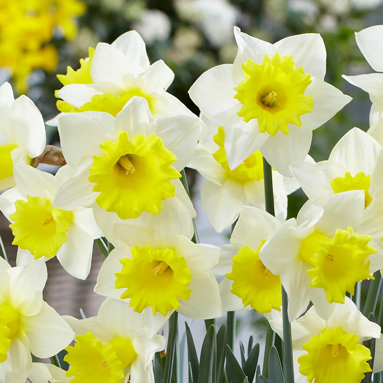 Nothing beats a spring carpet of daffodils to wake up a garden in the spring and Narcissi Cornish King fits a treat. White with bright yellow centre, Daffodil Cornish King is an attractive daffodil that can be admired in the spring garden. These plants are supplied as 12-14cm bulbs.