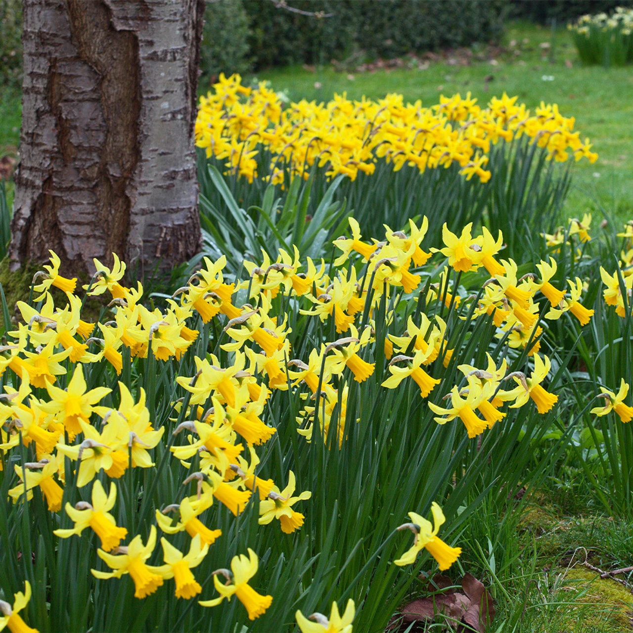 Daffodils (or narcissi) are both easy to grow and incredibly reliable. Like many bulbs, it takes very little time to plant them. Remove any weeds in the area you’d like to plant your bulbs and dig at the soil to aerate it. Fork in some organic matter to improve the drainage and soil structure. Daffodils prefer sunny spots and well-drained soil, so keep this in mind when planting. Plant each bulb 2-3 times the bulbs height and place it with the shoot facing upwards. Space them twice their width apart. Cover with soil and water if the ground is dry.