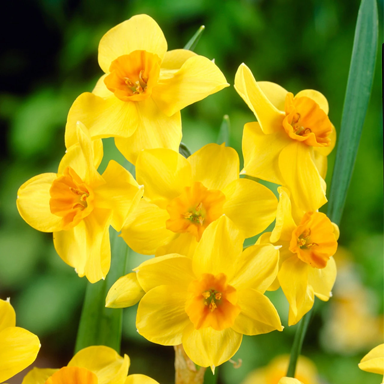 Fabulous multi-headed award-winning Tazetta Daffodil (Award of Garden Merit 1998). Narcissus Falconet produces broad leafed foliage and sturdy stems that support clusters of cheerful bright yellow flowers with deep orange cups. Suitable for borders but with its sweet strong fragrance, Daffodil Falconet is best planted in containers or positioned where the aroma can be appreciated. Height 35cm. Flowering April. 10/12cm bulbs supplied.