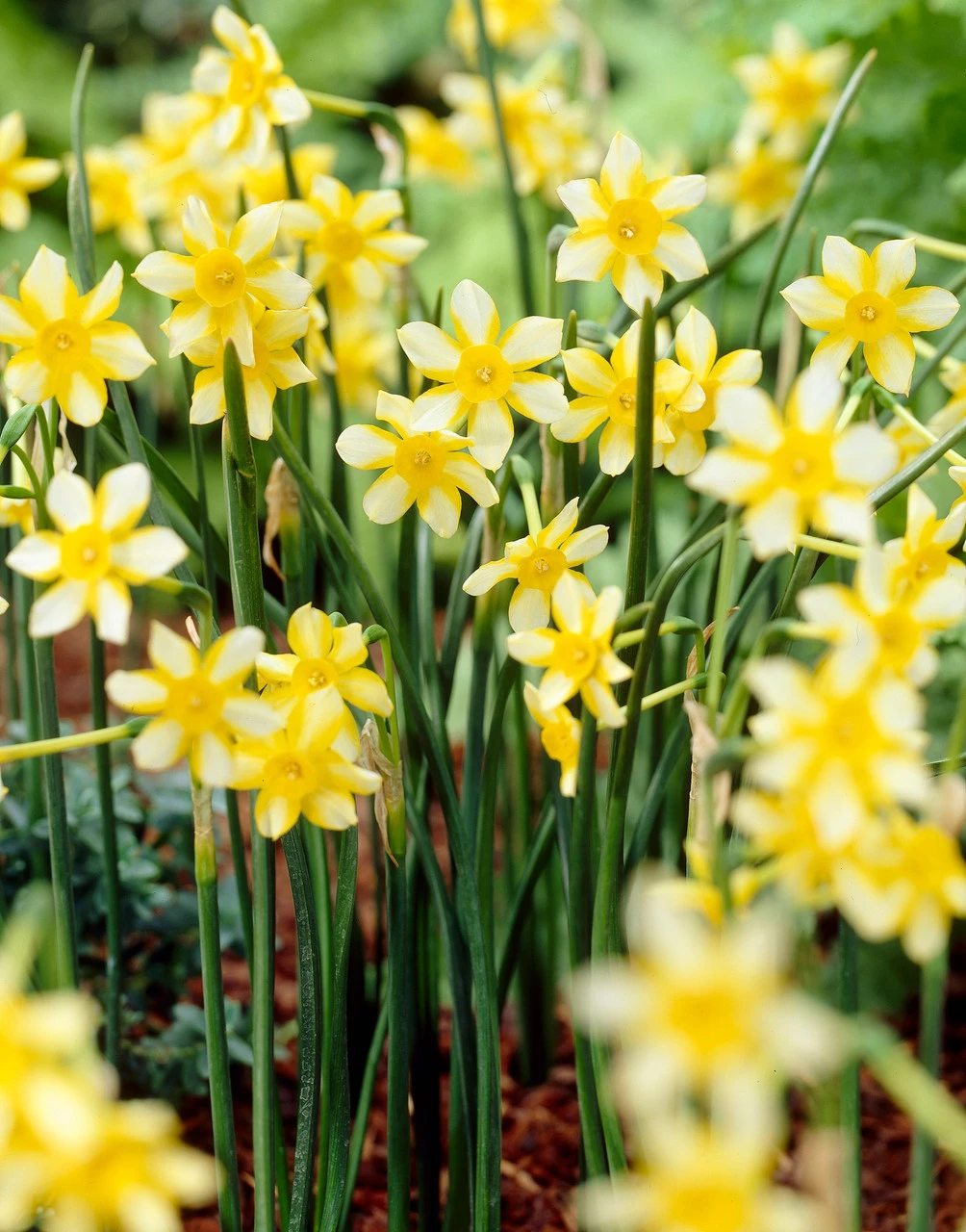 Narcissus New Baby is a clear multiheaded rockery variety, they are quite striking and have unique bi-colour flowers. The dainty buttercup yellow cup sits sweetly in the centre, surrounded by six creamy white petals with buttery yellow edges. Great for rockeries or patio pots, Daffodil New Baby also makes sweet cut flower displays. Height 20cm. Flowers March to April. 8-10cm bulbs supplied.
