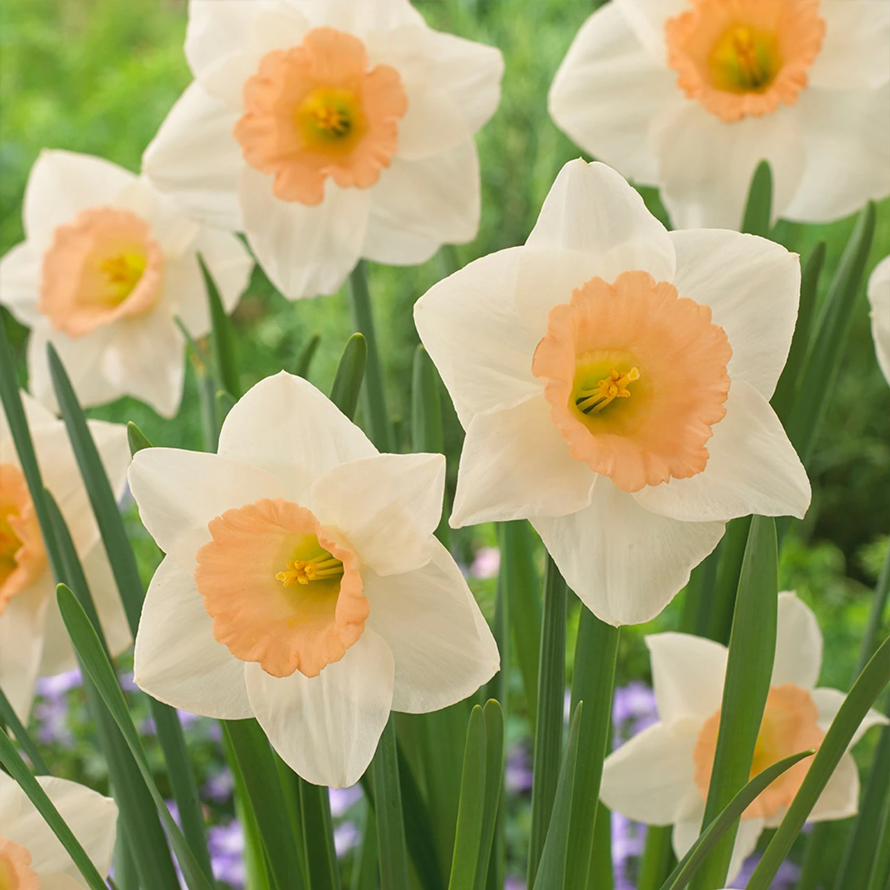 A stunning variety of Narcissi for your spring garden. Narcissus Peaches and Cream have soft white outer petals and a large pale peach, ruffled cup. Ideal for borders, rockeries or patio pots with the bonus of making great cut flowers for the vase. Daffodil Peaches and Cream is a fragrant beauty that will attract pollinators into your garden and thrives in sunny and partially shaded locations. Flowers March to April. Height 45cm. Top quality bulbs supplied.