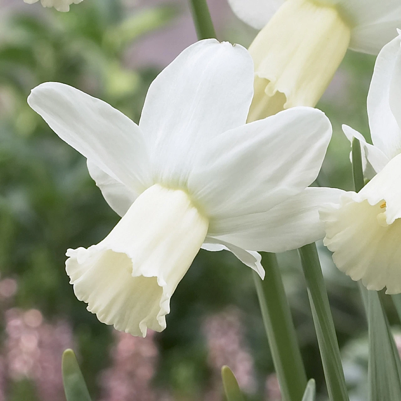 Narcissus Surfside is a delightfully elegant Narcissus variety which will add pure grace to your spring garden. The snow white reflexed perianth beautifully contrasts the palest cream yellow elongated trumpet which matures to a pure white. Daffodil Surfside is a subtle and complementary combination of cream and white, perfect planted alone or with other spring flowering bulbs. You can create a stunning display by planting Surfside alongside pink daffodil varieties such as Narcissi Perfect Lady or Pink Parasol. Ideal in the border or your patio pots and containers. Flowering from March to April. Height 30cm. 10/12cm bulbs supplied.