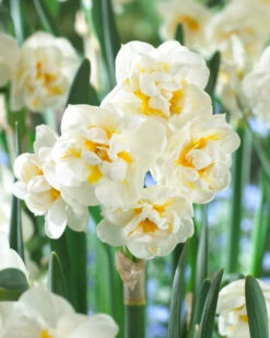 Narcissus The Bride is a stunning double flowering poeticus narcissus with creamy white petals and fringed orange centres. Each stem produces multiple fragrant flower heads that create a truly spectacular display during spring when they are in bloom. Growing to a height of only 35cm on sturdy stems, Daffodil The Bride is perfect for the front of a border or patio pots and containers, where their scented flowers will really be appreciated. Great for bouquets and cut flowers for the vase. Flowers in April and May. 12/14cm bulbs supplied.