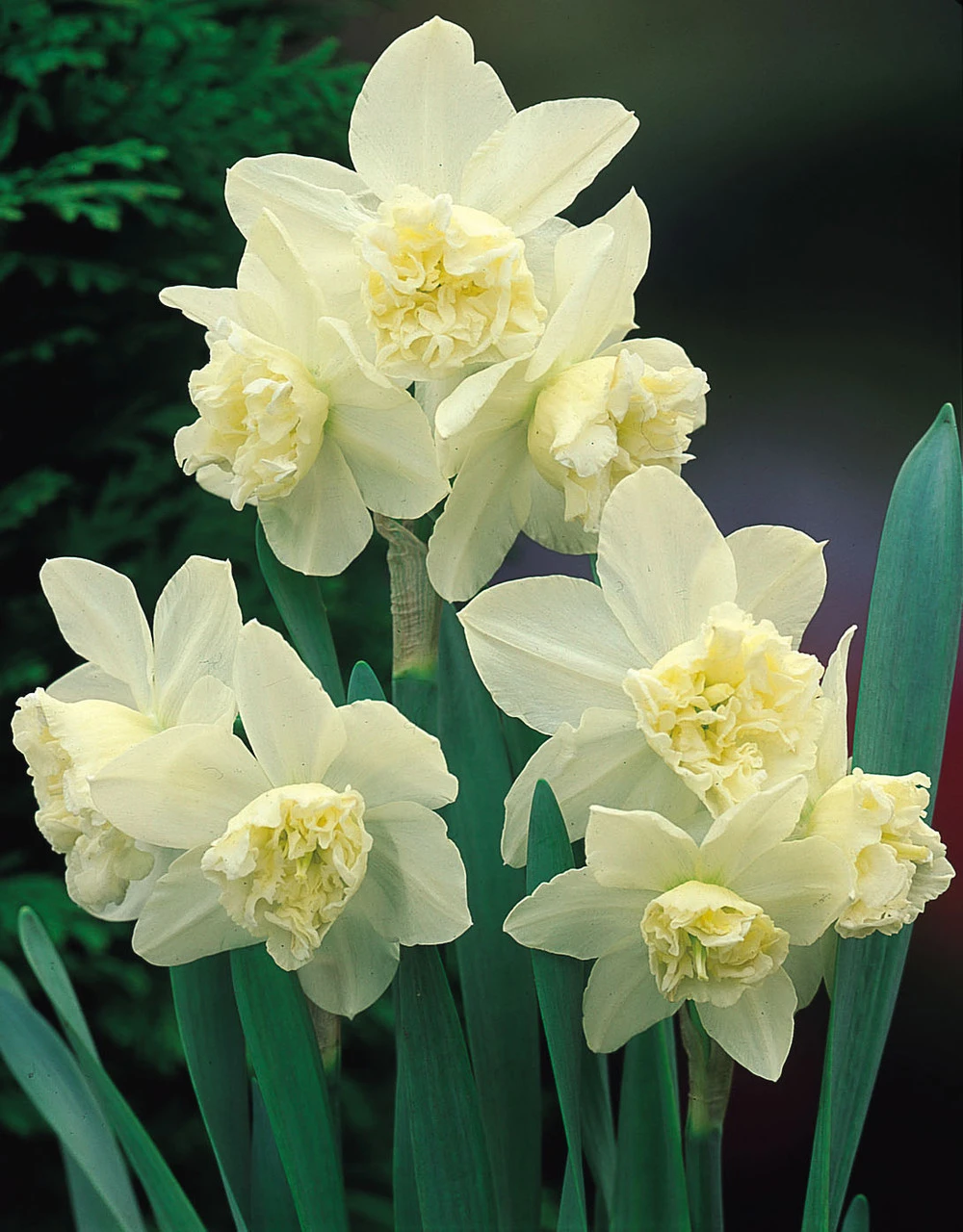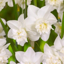 Narcissus White Marvel is a most attractive and interesting multi-headed variety (three to four flowers per stem). Creamy white double ruffled corona with pale white perianth stand above spears of rich glossy green spears of foliage. Daffodil White Marvel is deliciously scented and is the perfect choice featured prominently in beds or borders or containers. Height 30-35cm. Flowering mid-April. 12/14cm bulbs supplied.