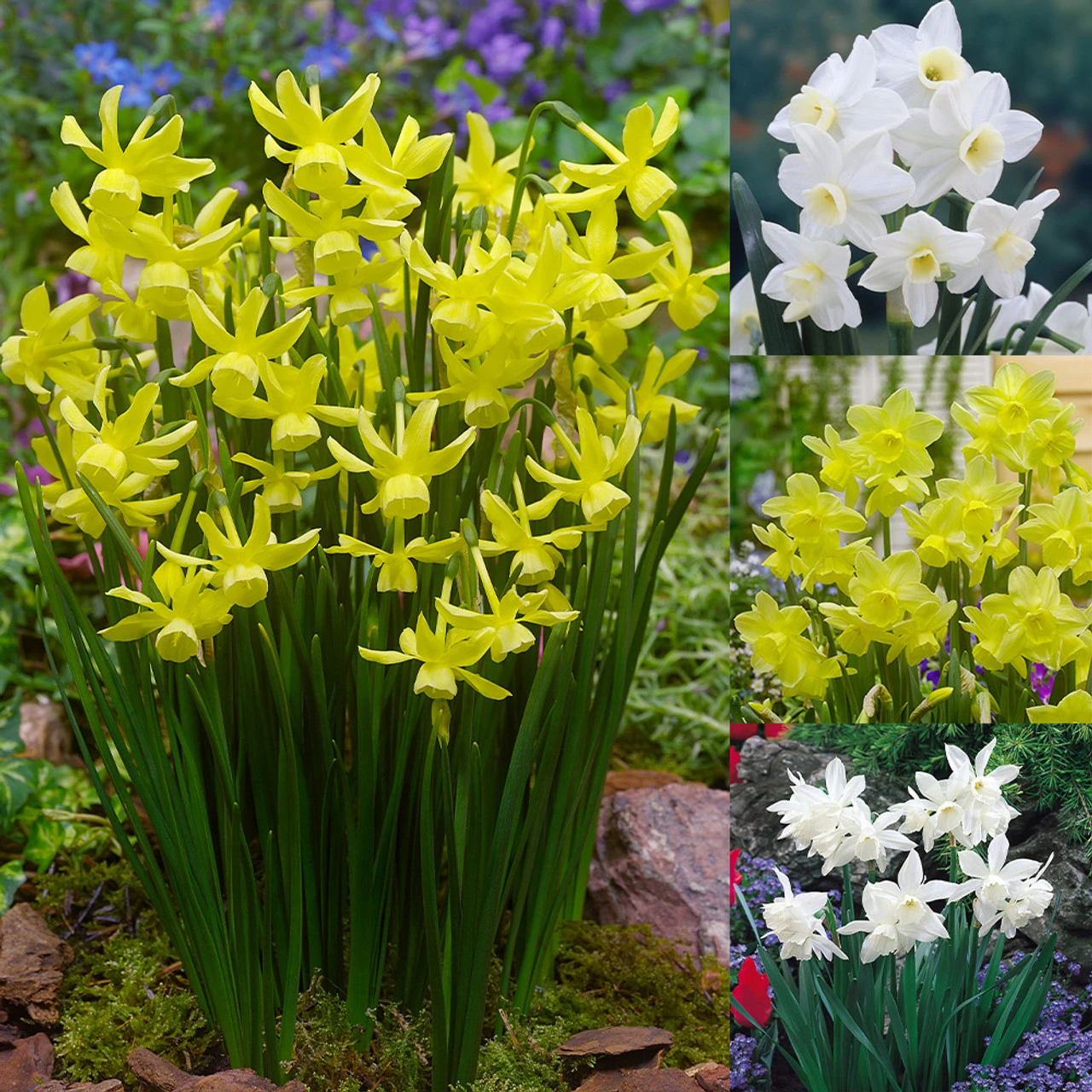 This Triandrus Narcissus Collection is a popular favourite due to their multi-flowering habit and sweet fragrance. Great for borders but best planted in patio pots and containers or planted where their fragrance can be properly appreciated. This Triandrus Daffodil Collection includes 15 each of Hawera, Silver Chimes, Stint, and Thalia. Flowers March and April. 10-12cm bulbs supplied.
