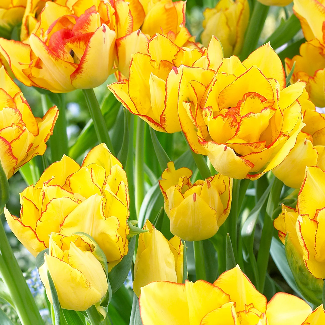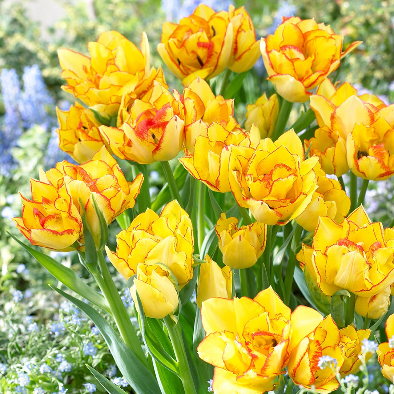 Tulip Aquila has large semi double tulips in pastel a startling yellow with a cherry pencil line along its gently pointed edge and boast three to five flowers per stem. These stunningly colourful Tulips make an excellent addition to any garden or as part of a vibrant cut flower display. Height 40-45cm. Flowering from April through to May. 11/12cm Bulbs supplied.