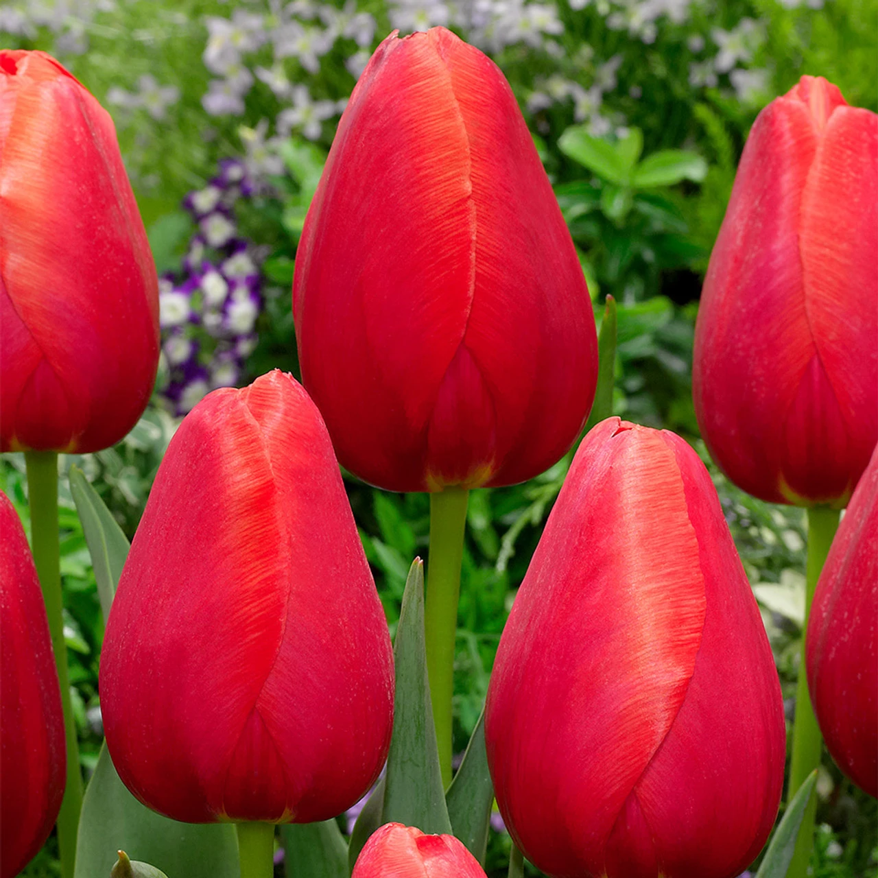 Tulip Avignon is a single late tulip with deep orange-red flowers with deep apricot flushes. Flowering from April to May, Avignon will add a fiery show to your spring display. Height 60cm.