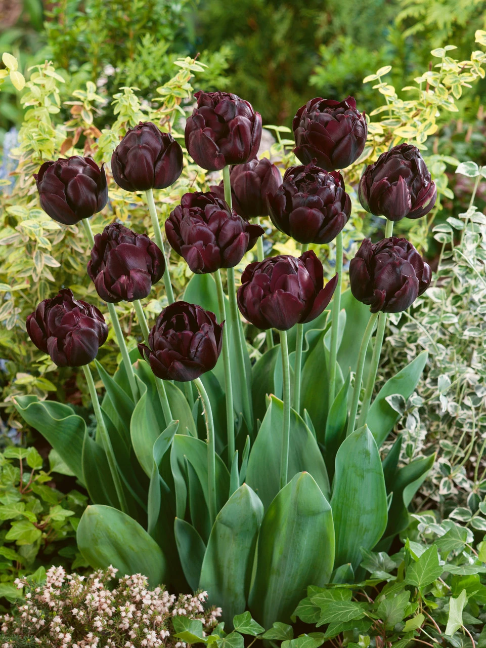 Tulip Black Hero is a striking double-late variety that produces giant peony shaped flowers. Its deep maroon/mahogany blooms appear almost black, creating a mysterious effect when planted among your flower beds. Black Hero is perfect for planting in patio pots, borders, or as part of a seasonal cut flower bouquet.