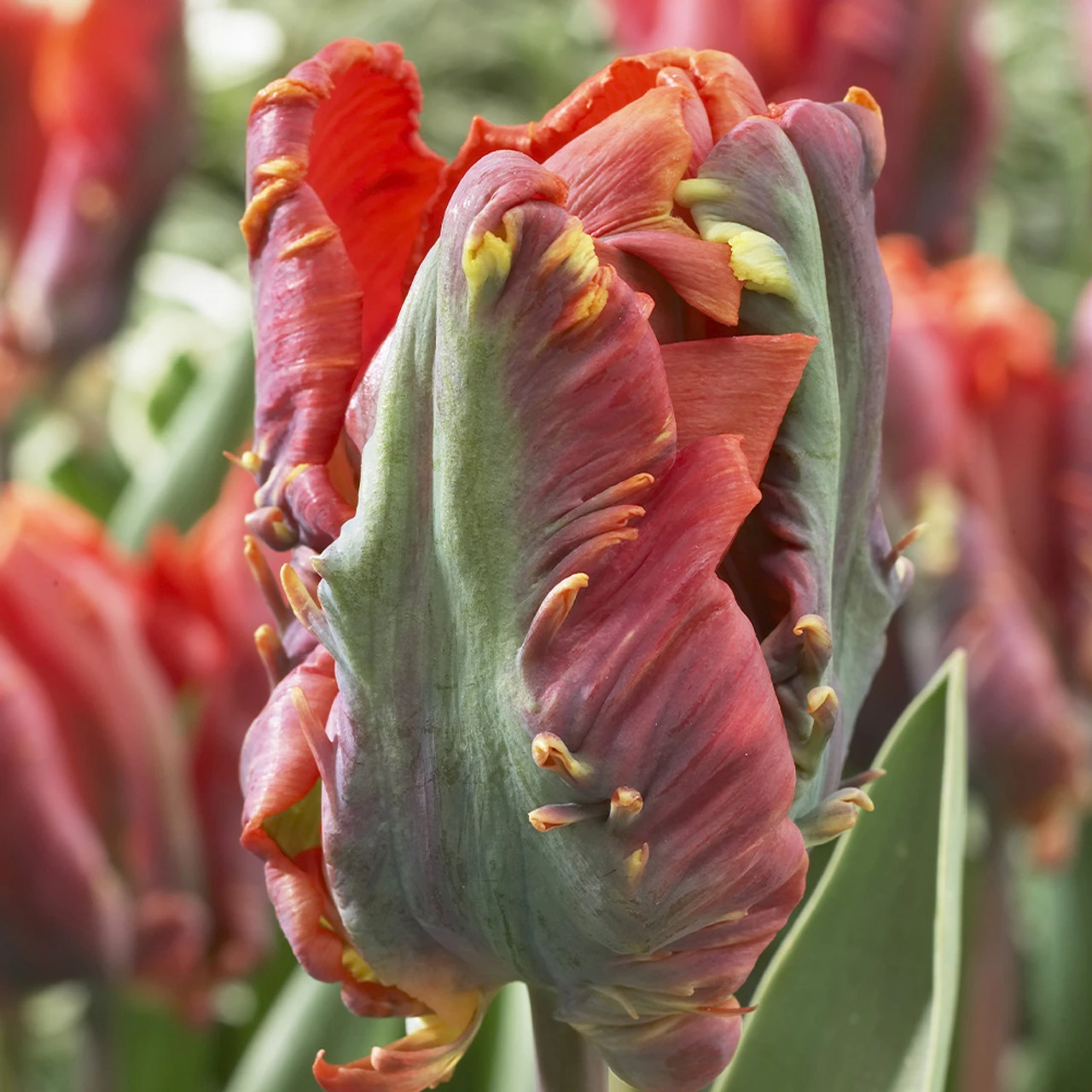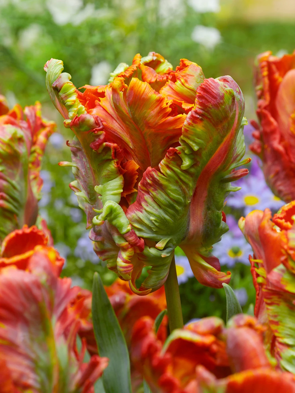 One of the most unusual but more effective Parrot Tulips to be introduced in recent years has to be ‘Blumex Favourite’. Their gorgeous orange/red frilled flowers with slightly yellow edges explode onto the scene during spring, adding something truly unique to any border or patio container display. They are also an excellent choice as cut flowers for the vase.
