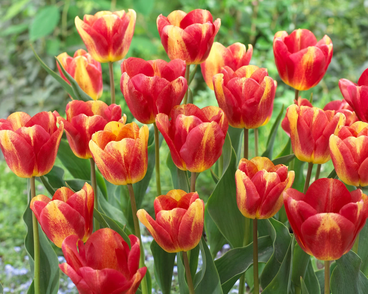 Tulip bulbs should be planted in autumn, before any frost. Find an area of soil that is well-drained and moist and plant your bulbs at twice their depth and spaced apart by 10-15cm. Ensure they are properly covered, you should not be able to see them on the surface of the soil. Position in an area that you know receives plenty of sunlight but is also sheltered from harsh winds. Deadhead the flowers once they wilt, encouraging a healthier plant.