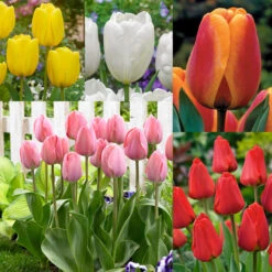 An exceptional collection of Darwin Hybrid Tulips, with some of the largest blooms and tallest, sturdy stems of all Tulips at 55-60cm. An excellent selection of vibrant colour to really liven up your garden. These beautiful Tulips prefer direct or partial sunlight and are ideal for planting in patio pot containers, garden borders or as part of a cut flower display to be enjoyed within the home. Flower during the spring season from April to May. This collection includes 10 bulbs of the following, Tulip Apeldoorn (red), Apeldoorn Elite (red and orange), Golden Apeldoorn (yellow), Hakuun (white) and Mystic Van Eijk (pink).