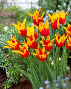 Tulip Fire Wings produces dazzling red flowers with vibrant yellow points at the end of each petal making for a fiery appearance. Flowering from April to May, these beautiful flowers will add bold colour to containers for the patio or add character to the front of the garden border. They can also be cut and enjoyed indoors as part of a floral bouquet.