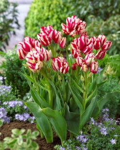Each perfect little flower is a smashing combination of brilliant white with cardinal red flames. This multi-flowering variety produces a miniature bouquet of five to eight blossoms on each stem. We recommend planting with Fiery Club (as illustrated) to add texture and interest to your displays. 11-12cm bulbs supplied.