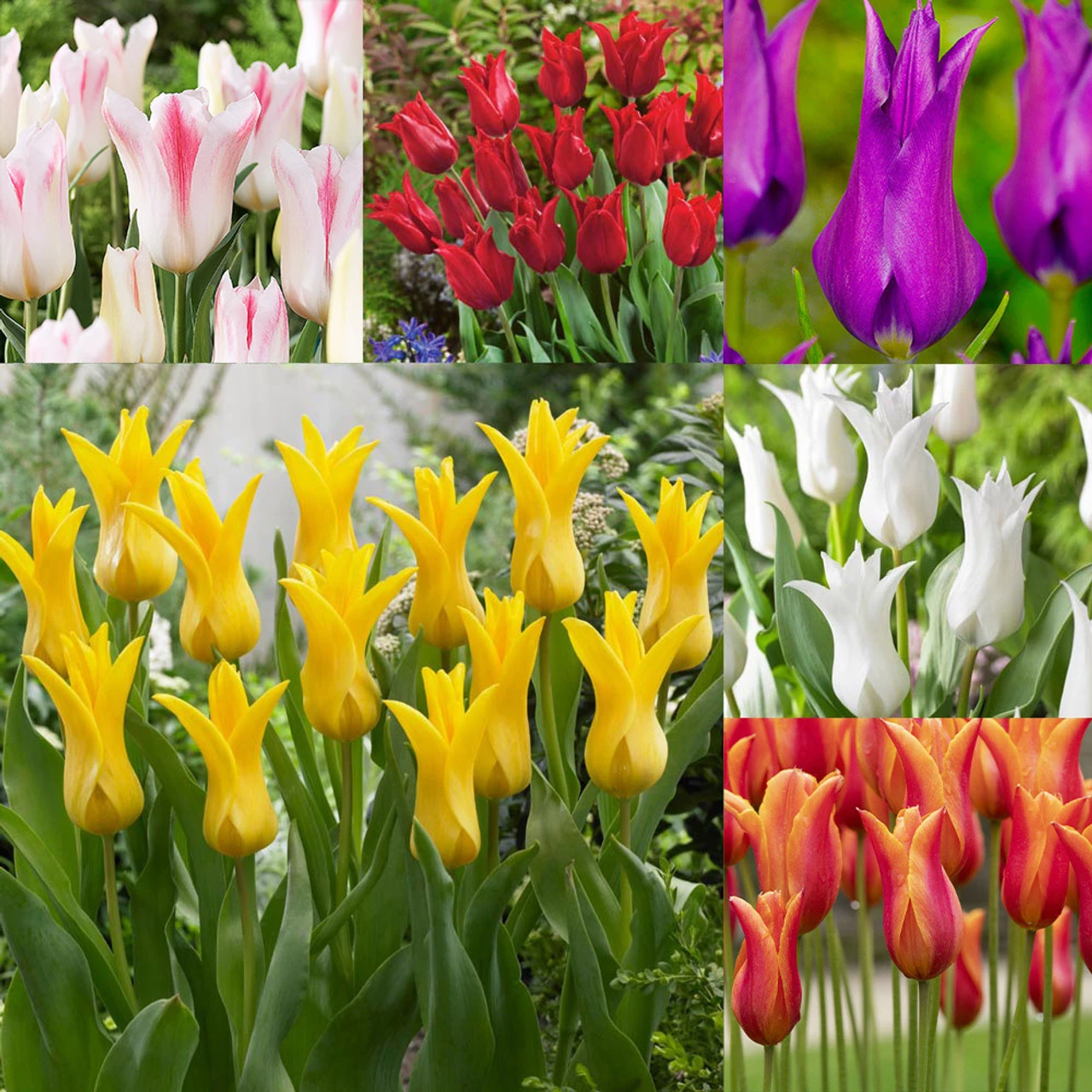 These beautiful fluted Tulips will be the highlight of the garden this spring. Ideal for garden borders, patio containers or as part of a cut-flower display. Plant these stunning colour combinations together or mix them to create a real feature and talking point within the garden. The collection includes 10 each of Flutes on Fire, Holland Chic, Pieter De Leur, Purple Dream, Tres Chic, and Seattle.