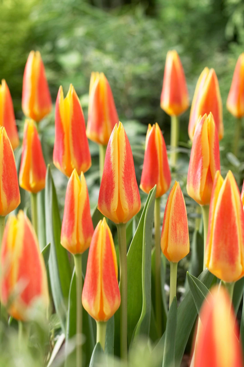 Tulip bulbs should be planted in autumn, before any frost. Find an area of soil that is well-drained and moist and plant your bulbs at twice their depth and spaced apart by 10-15cm. Ensure they are properly covered, you should not be able to see them on the surface of the soil. Position in an area that you know receives plenty of sunlight but is also sheltered from harsh winds. Deadhead the flowers once they wilt, encouraging a healthier plant.