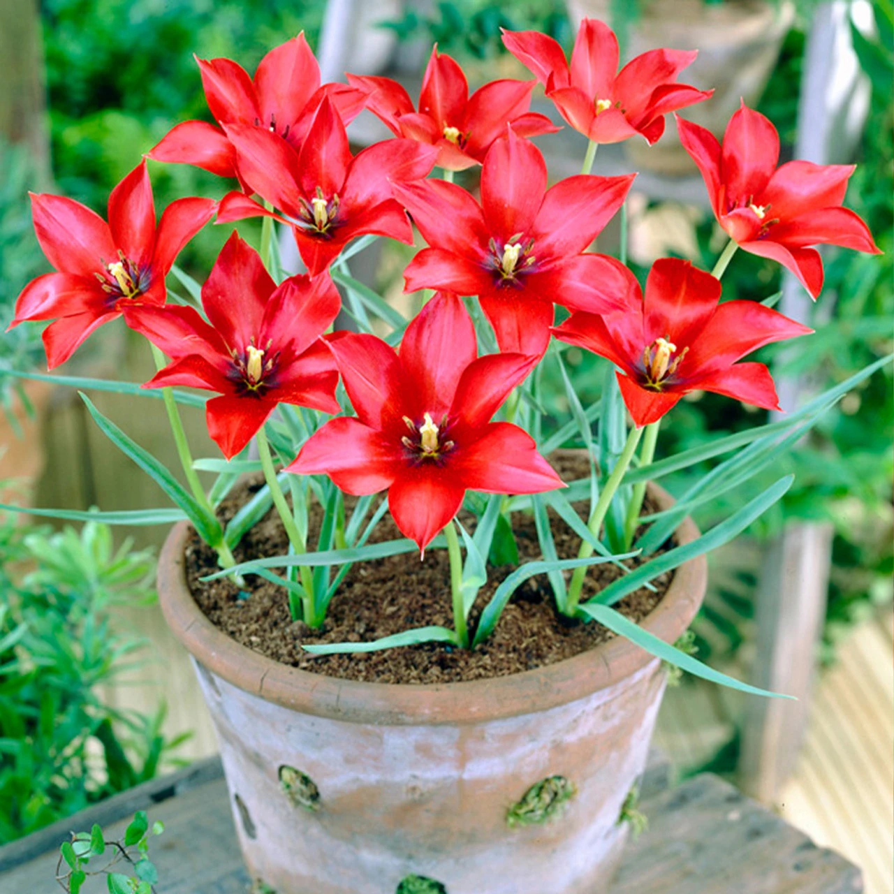 Linifolia’ is an RHS award-winning species Tulip that will add a small burst of colour to your spring garden. Flowering from April to May, this spring beauty will produce cup-shaped flowers in a vibrant shade of scarlet red with slender undulating grey-green leaves. ‘Linifolia’ makes a perfect addition to rockeries and patio pots, growing to height of only 20cm.