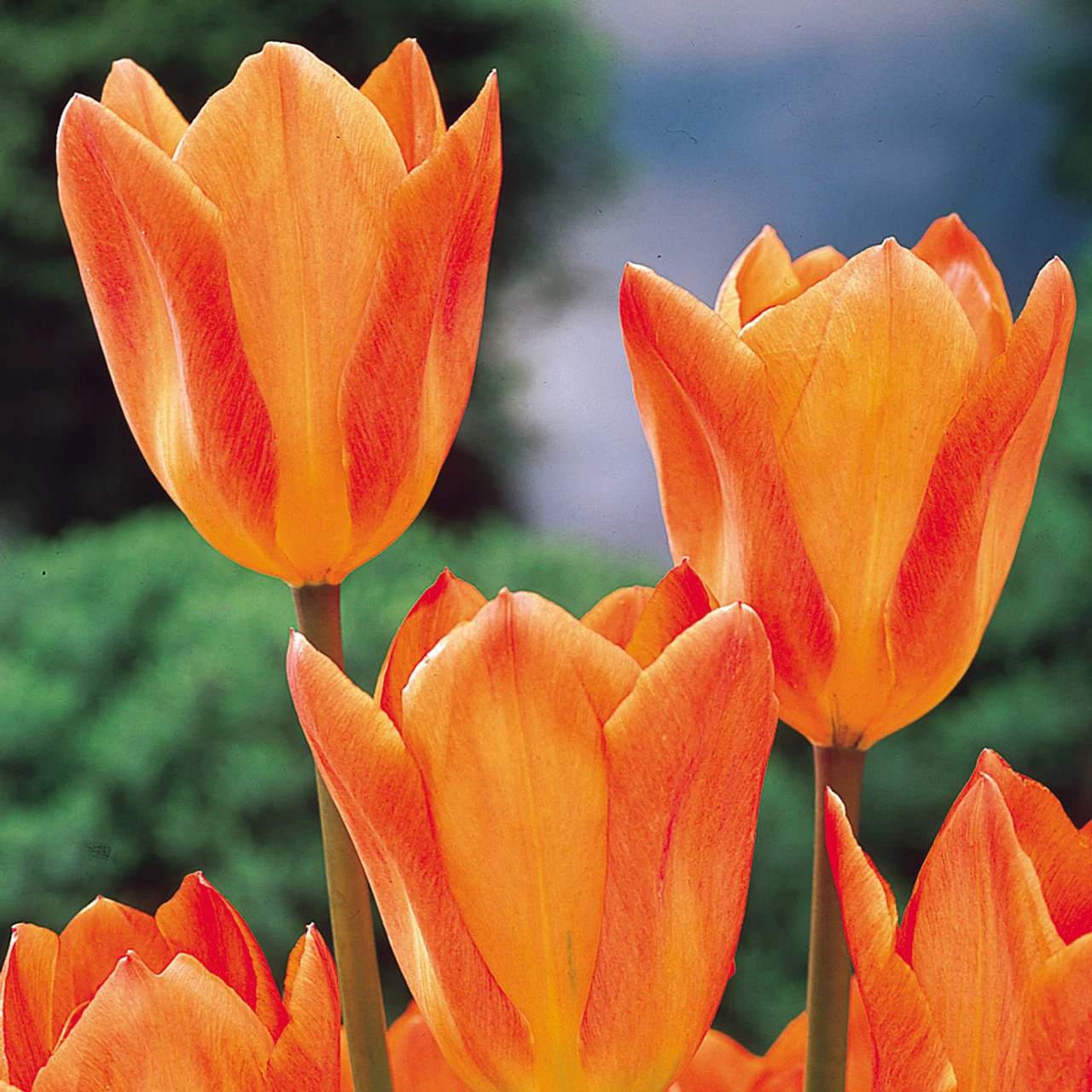 Tulip Orange Emperor is an early flowering variety that will produce a welcome sight of huge silky petals in a brilliant tangerine orange which fades to amber. As the plant matures, these petals open out to reveal yellow centres with contrasting plum purple anthers. Make your neighbours green with envy with the help from Orange Emperor, a gorgeous seasonal bloom perfect for any display.