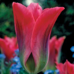 Who doesn’t love a good Viridiflora tulip? Tulip Pimpernel is an extravagant variety of Viridiflora, producing scarlet red arched petals and dark green foliage throughout spring. Plant with combinations of greens, whites, and even purples to help highlight its beauty in the spring garden.