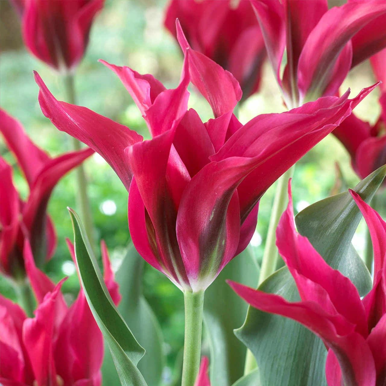 Tulip bulbs should be planted in autumn, before any frost. Find an area of soil that is well-drained and moist and plant your bulbs at twice their depth and spaced apart by 10-15cm. Ensure they are properly covered, you should not be able to see them on the surface of the soil. Position in an area that you know receives plenty of sunlight but is also sheltered from harsh winds. Deadhead the flowers once they wilt, encouraging a healthier plant.
