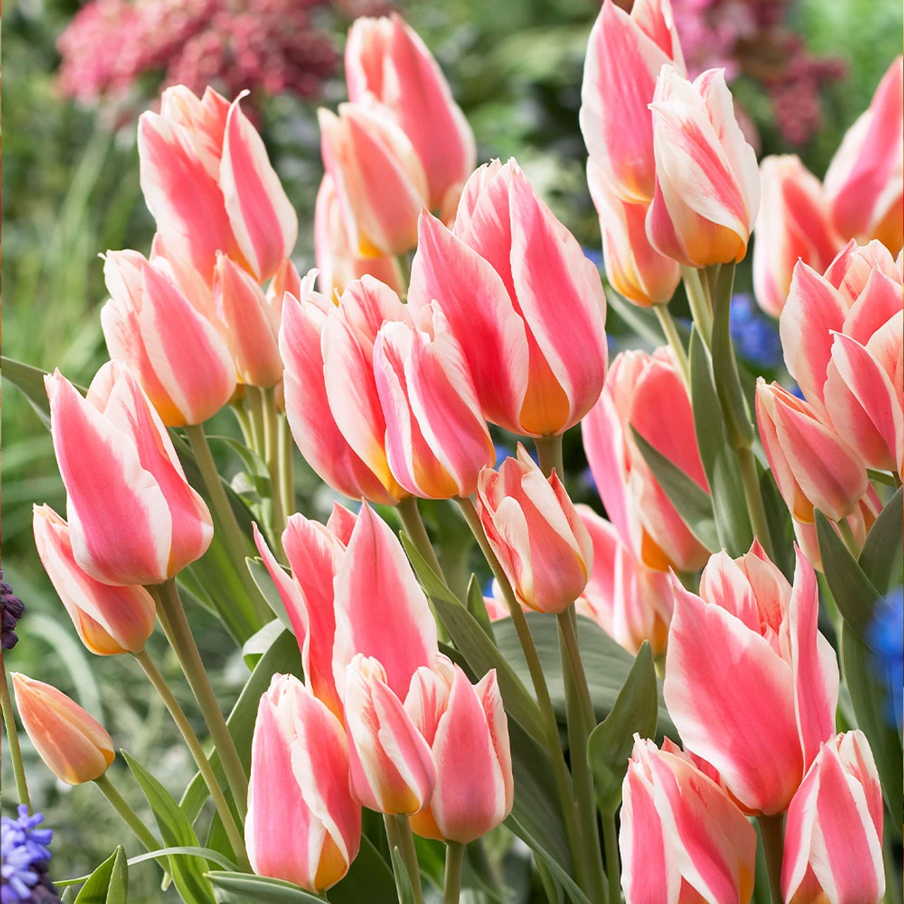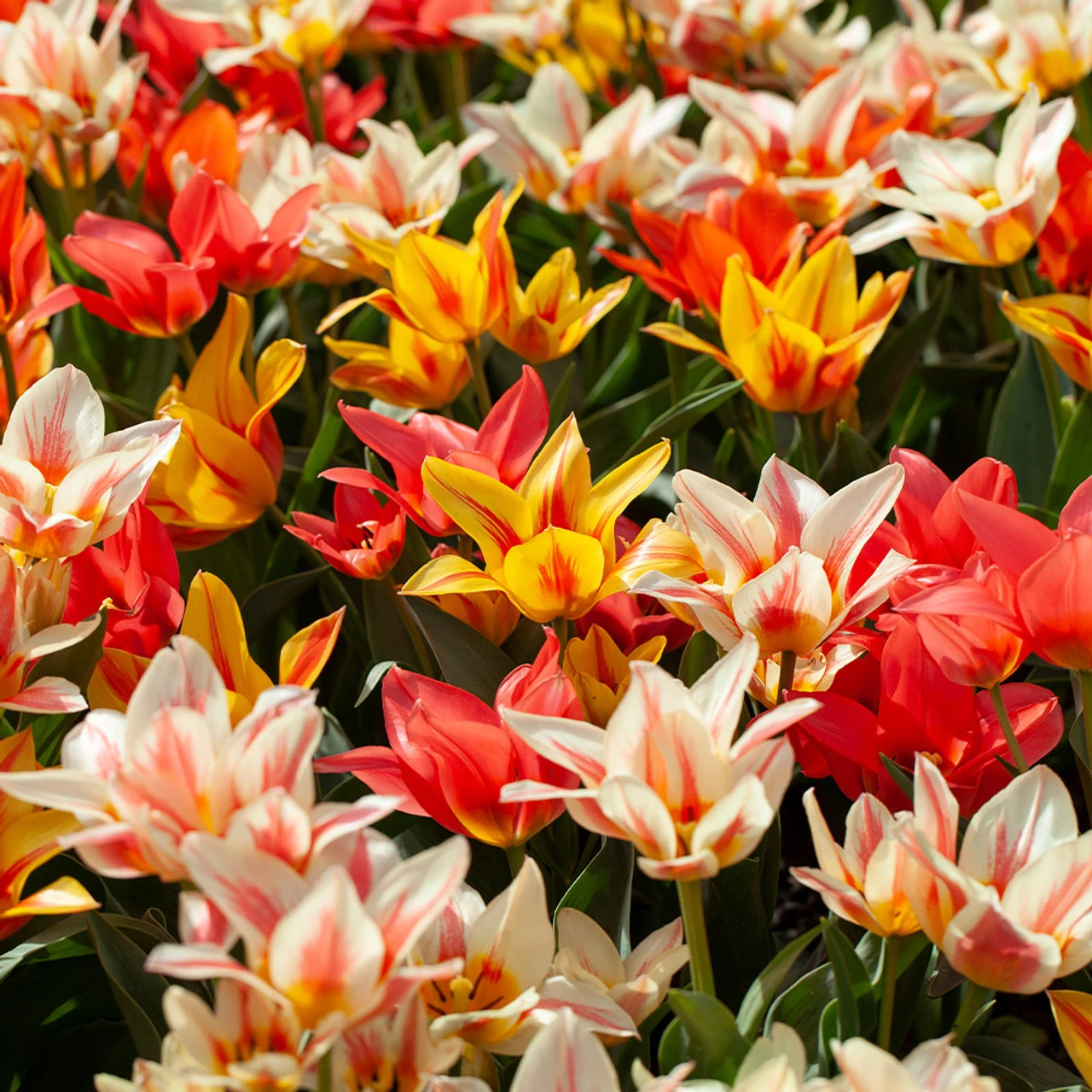 Tulip Quebec produces gorgeous scarlet red blooms, each patterned with a broad chartreuse green margin. This multi-flowering variety is perfect for growing in any container or bedding display.
