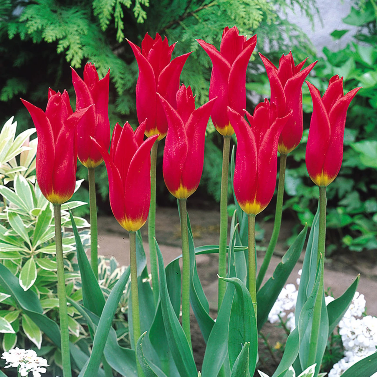 Tulip ‘Red Shine’ is an outstanding long fluted lily flowering tulip in rich carmine red with a dash of pure yellow at the base. Our lily flowering range include some of our most popular tulips due to their unique fluted petals that gracefully reflex suspended on tall, fine wiry stems that resemble a lily. With its height of 60cm, ‘Red Shine’ makes a great cut flower and is striking when planted in the bed or border.