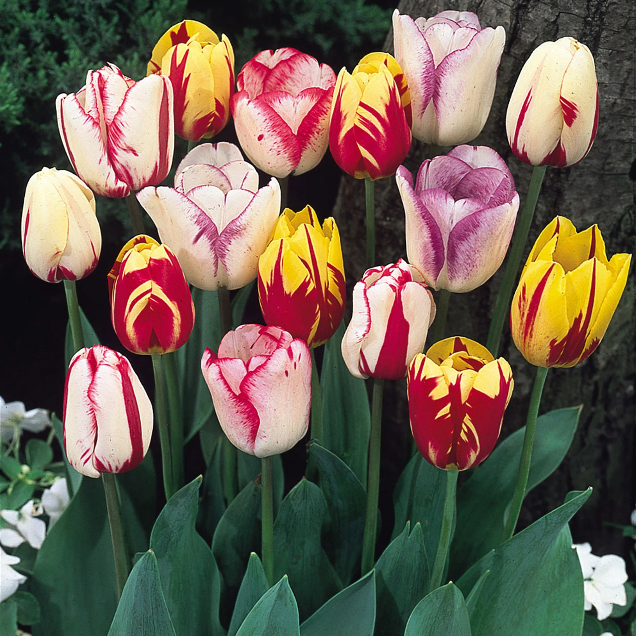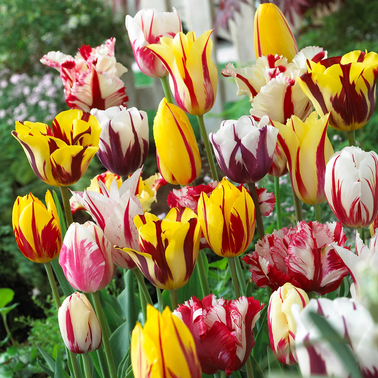These delightfully contrasting and flaming Tulip Rembrandt mixed varieties are perfect for adding some interest to the spring garden. Ideal for any gardener who isn’t too fond of a uniform display, this Rembrandt mixture will provide unusual charm and vibrancy to pots or borders. Also perfect as part of a cut-flower display to be enjoyed within the home. We guarantee our great value mixture packs contain a comprehensive blend of variety and colours. By definition the components of the mixtures are not labelled/named on arrival.