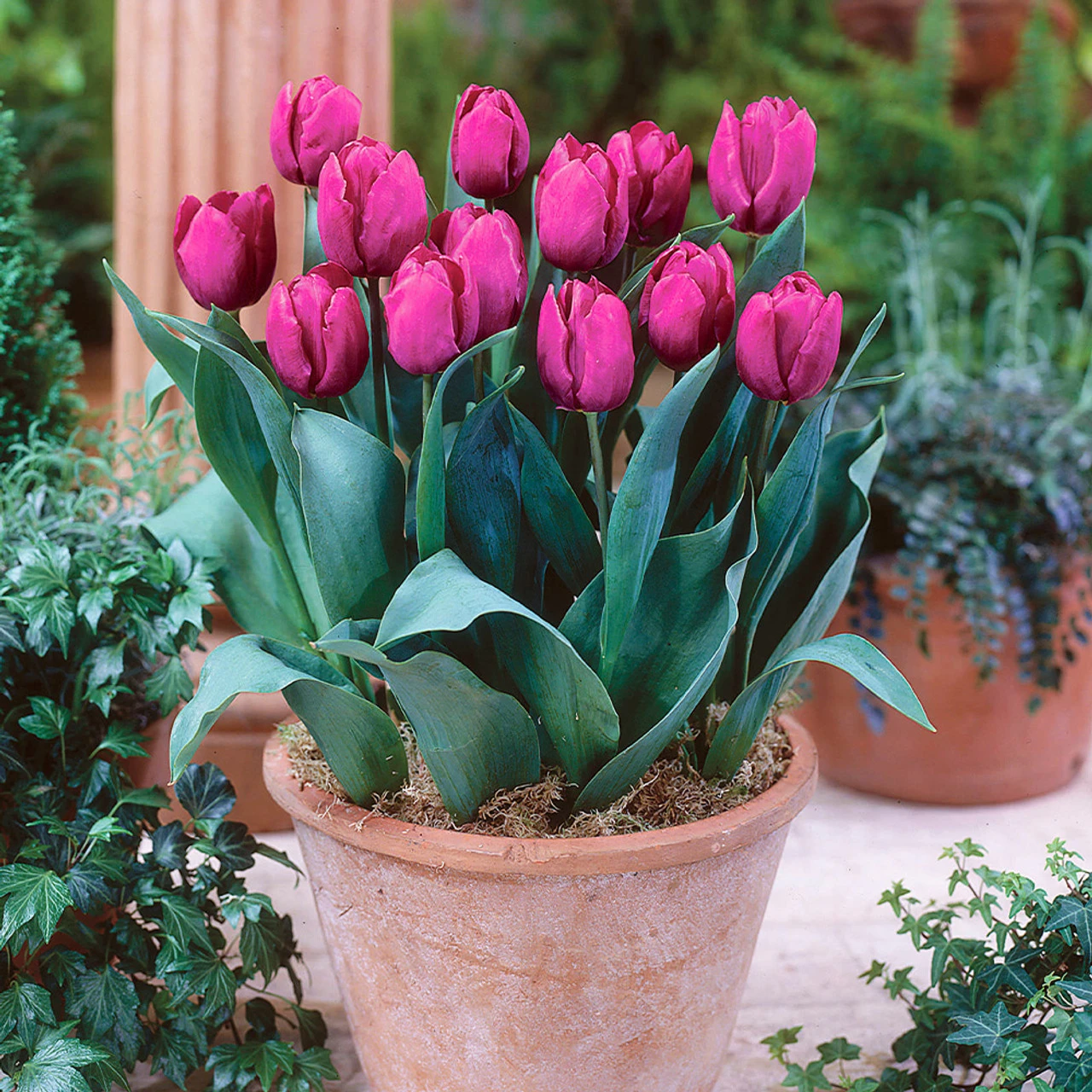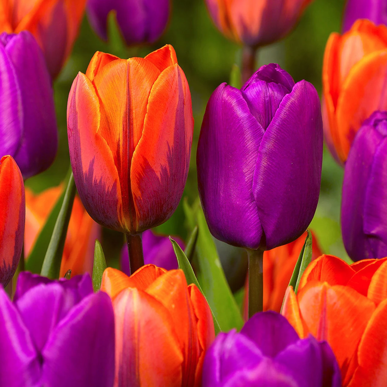 These exciting single early tulips look fantastic when planted together. The combination of electric orange from Princess Irene and rich purple-mauve from Purple Prince gives you a striking display that is guaranteed to liven up any border, and growing to 30cm in height they are both excellent for growing in pots and containers. These are some of the earliest tulips of the season to bloom, really kicking off spring with a riot of colour. The collection includes 10 each of Princess Irene (orange) and Purple Prince (purple).