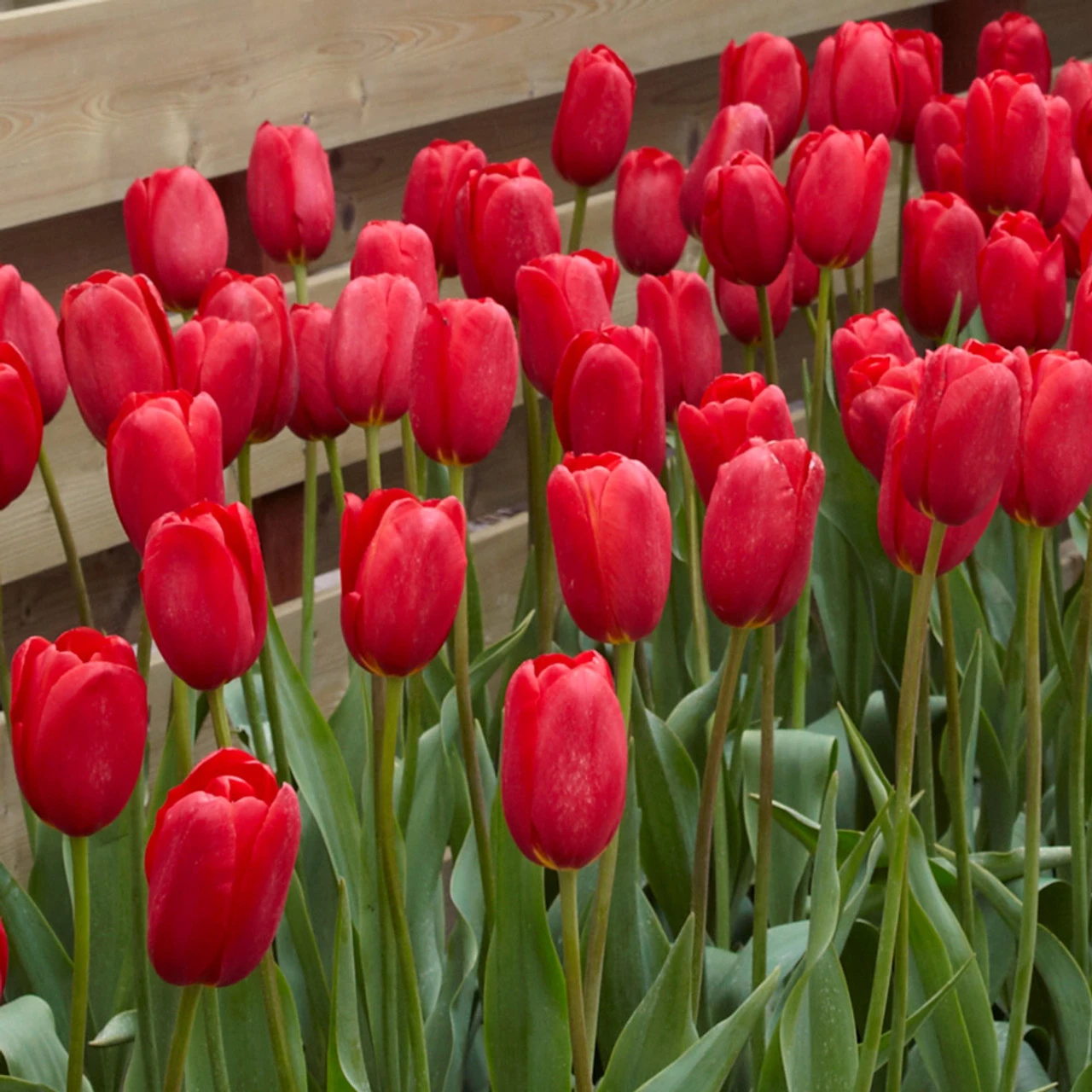 Sky High Scarlet is a splendid single late Tulip variety which really lives up to its name. It produces vibrant scarlet red flowers at a towering height of up to 90cm, making it possibly one of the tallest Tulip varieties around. The stems are strong for their height but they are a little more prone to wind damage than shorter varieties so some protection or shelter will certainly benefit these Tulips. They are perfect for borders or patio pots and make excellent cut flowers for the vase.
